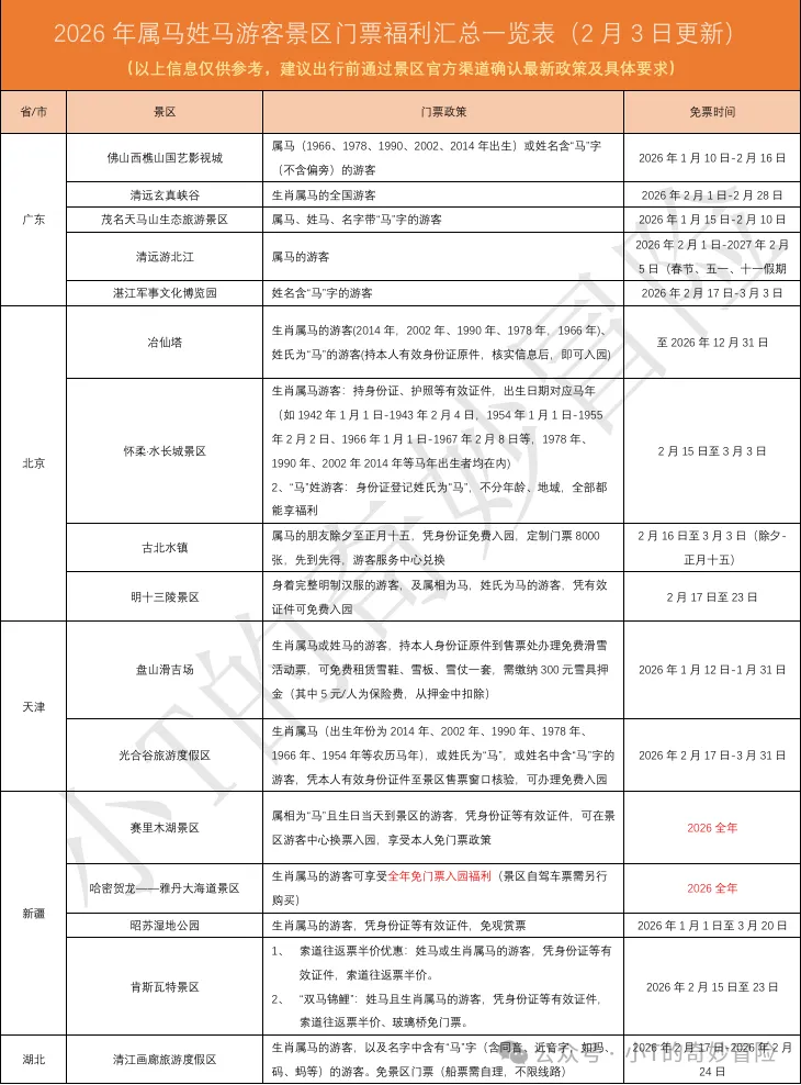 生肖属马/姓马游客,免费景区上新!(广东+全国)