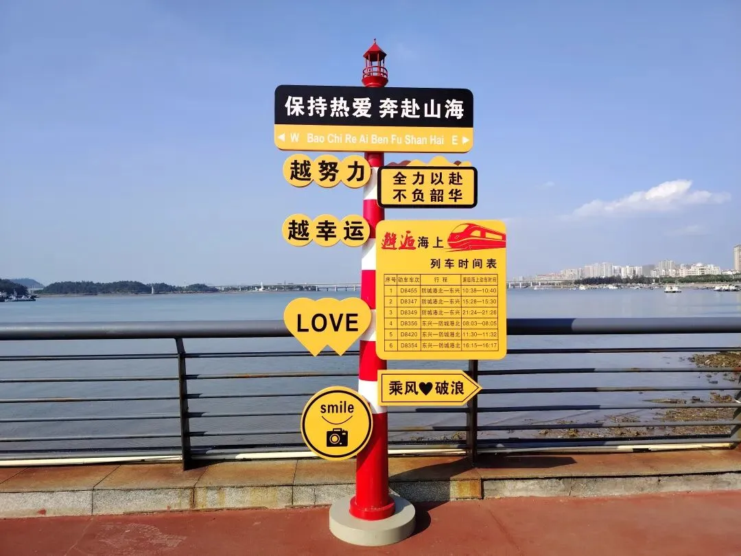 防城港北港故里——家门口的宝藏景点前两天,有朋友带孩子过来找小雨点玩,吃完午饭休息一会后,两个小朋友都迫不及待地要出去玩,问他们想去哪里,异口同声地说“北港故里”。刚好那也是大人们爱去的地方,于是我们收拾一下,便一起骑车出发了。 北港故里是这几年新开发的景点,也是西湾旅游景区的重要组成部分,集海滨休闲、港口观光、夜市美食、历史探访于一体,离我们家很近,骑车十多分钟就到了。我们到那里时是下午三点多,阳光正好,海边已有不少人在拍照、吹风。海水正在退潮,还有人拿着自备的工具,在礁石上敲生蚝。