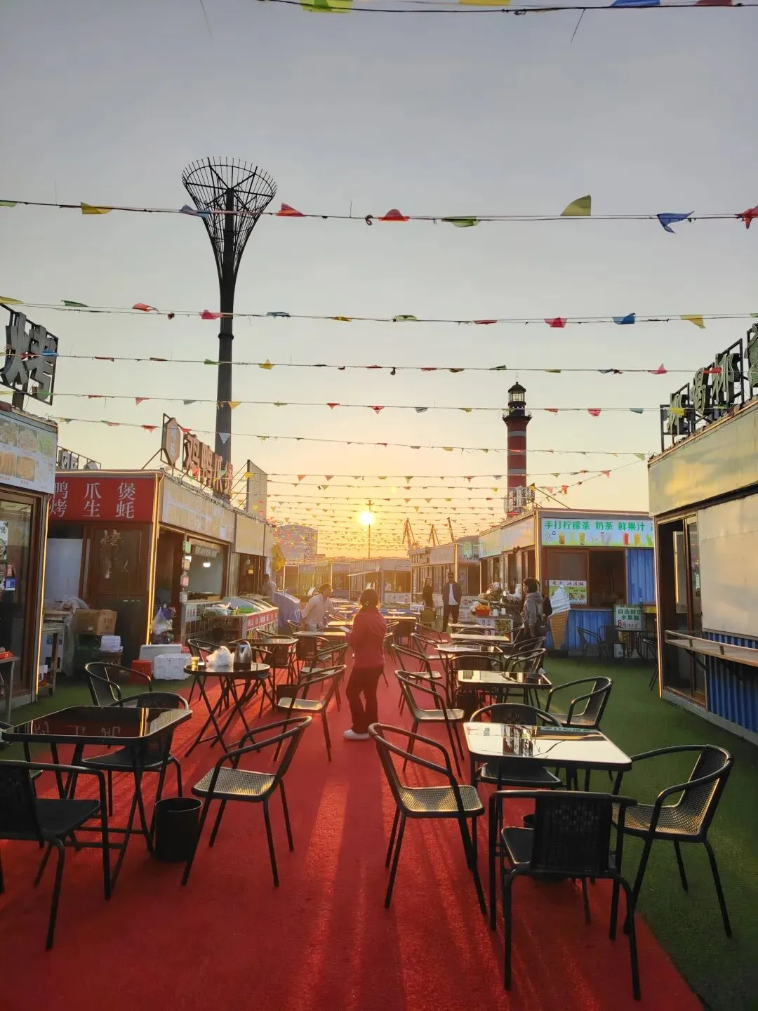 热闹的美食一条街此时还是空荡荡的