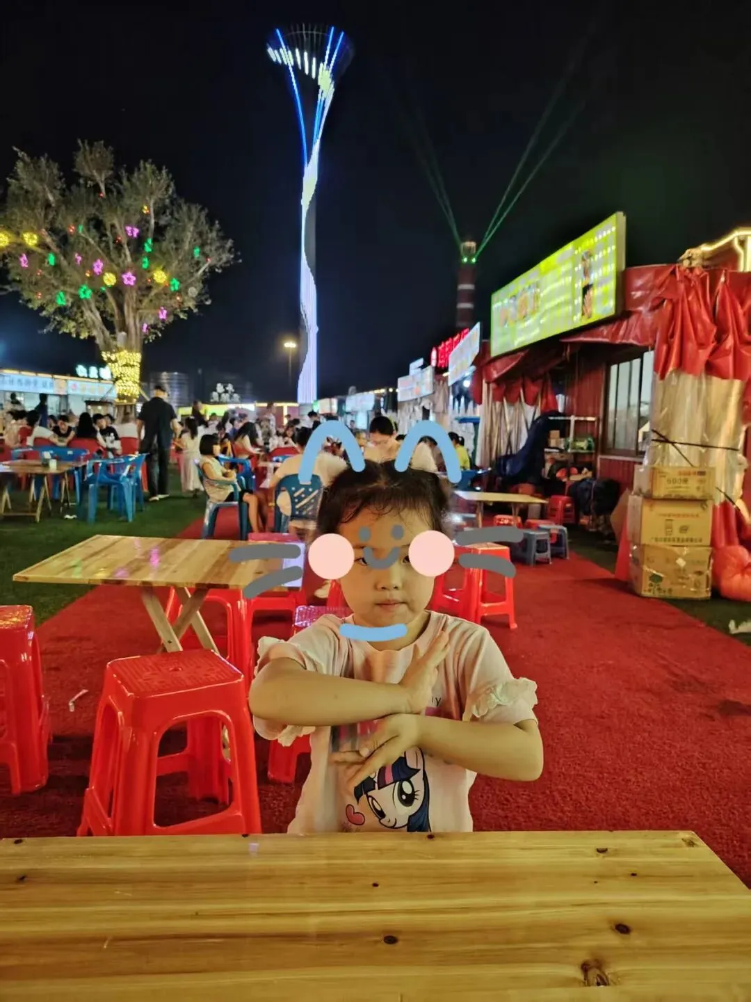 之前带小雨点过来时拍的,当时去吃夜宵的人还不少 吃完后,两个小朋友还想玩卡丁车,于是又来到夜市广场,让他们又玩了一次,过足了瘾。后来,海边传来节凑感很强的音乐声——原来有家传媒公司临时搭了个KPOP随机舞蹈的舞台,不少年轻男女正随着节奏即兴跳舞,活力十足,吸引了不少人驻足观看,俩孩子也看得津津有味,于是我们索性在台阶上找了个位置坐下来观看。