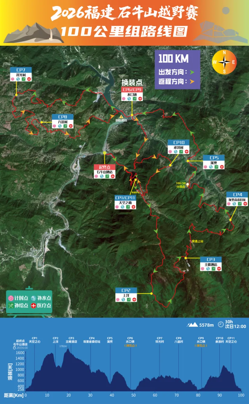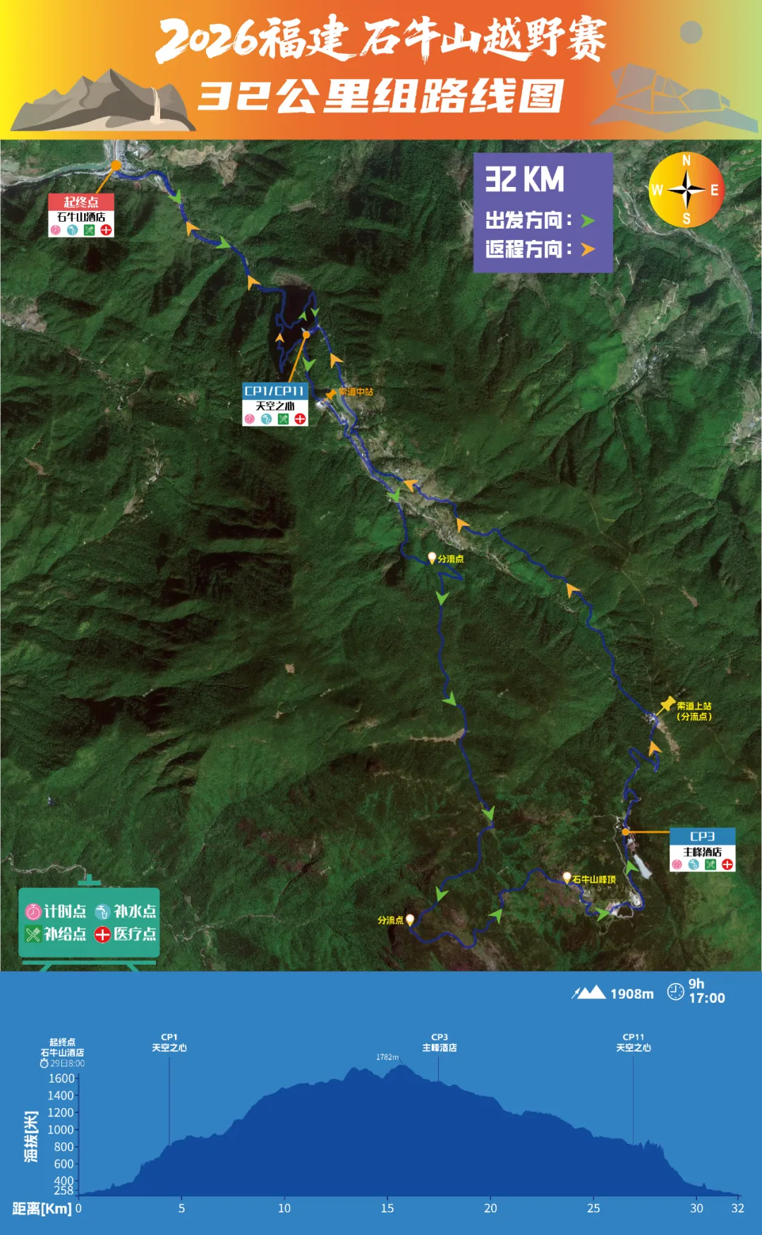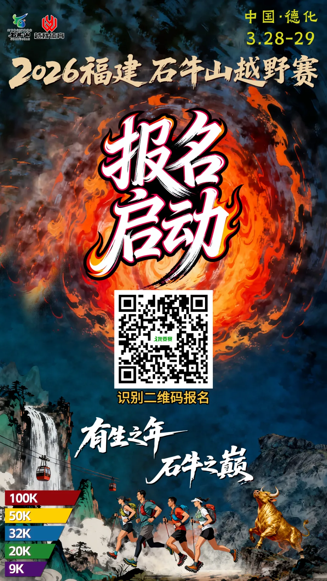 2026福建石牛山越野赛将于2026年3月28日-29日在福建省泉州市德化县石牛山景区鸣枪起跑。赛事分设100公里、50公里、32公里、20公里、9公里五大组别。其中100公里和50公里于3月28日起跑,32公里、20公里、9公里组于3月29日起跑。