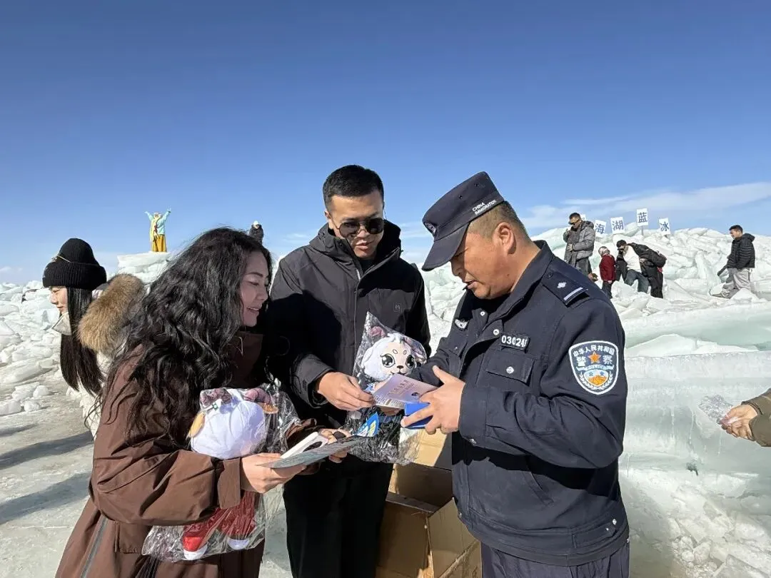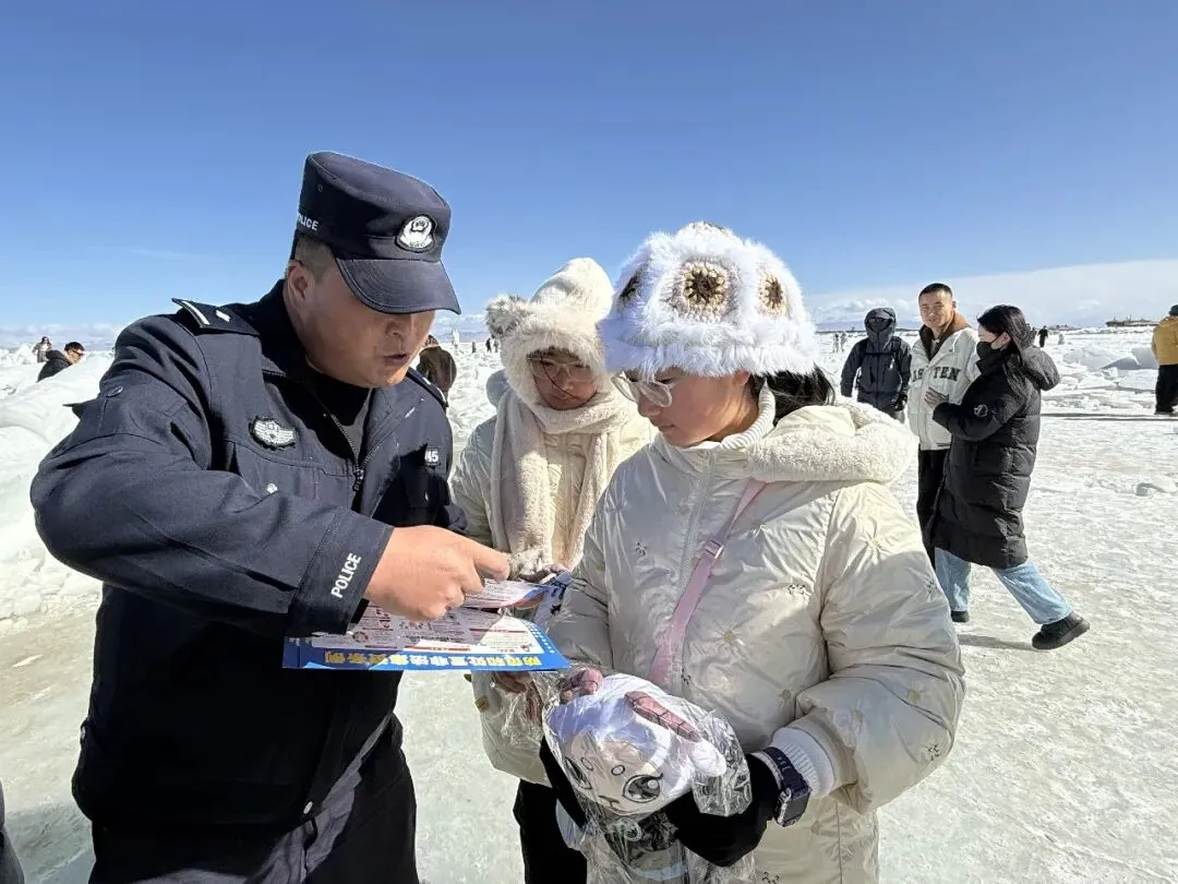 宣传民警主动深入游客集散中心、冰面打卡点、餐饮住宿区等重点区域,在人流密集处张贴警示海报,协调利用景区广播滚动播放安全提示,将防骗、拒非、禁毒的意识和知识自然融入游客游览、消费全流程,累计发放宣传资料400余份、禁毒宣传品50余个,接受群众咨询60余人次,实现宣传全覆盖、提醒无死角,让广大游客在欣赏青海湖冬季美景的同时,也收获了满满的安防知识。