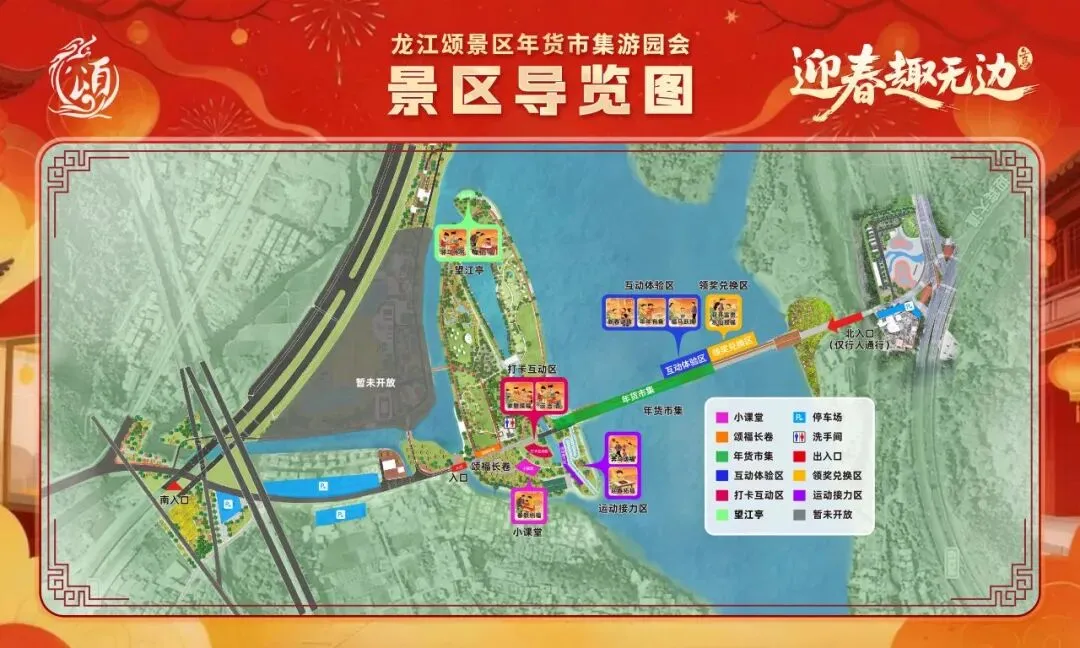 活动期间,拍摄游园会精彩瞬间(如游戏挑战、市集逛吃、龙江风格打卡点等),关注龙江颂抖音号、发布抖音并带话题 #特色闽南年货,同时@龙江颂景区官方账号,即可凭发布记录前往礼品兑换区领取精美小礼品1份!