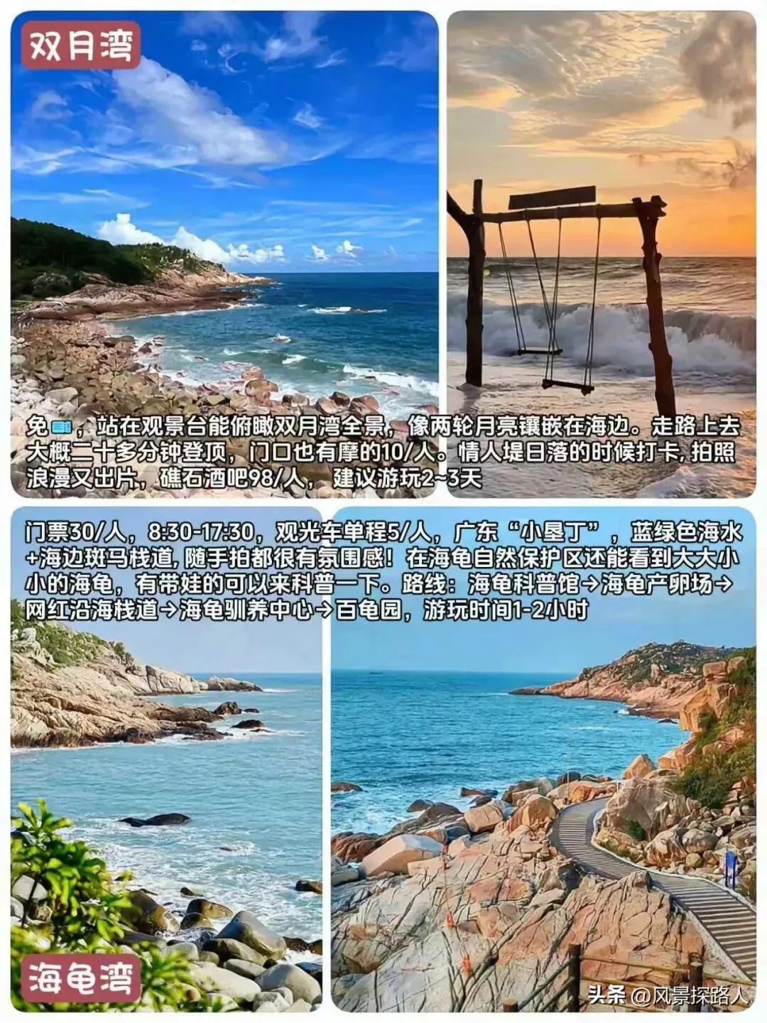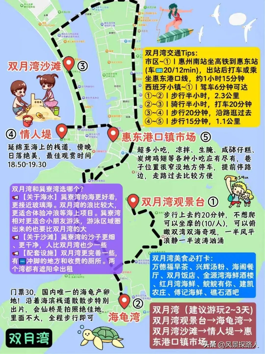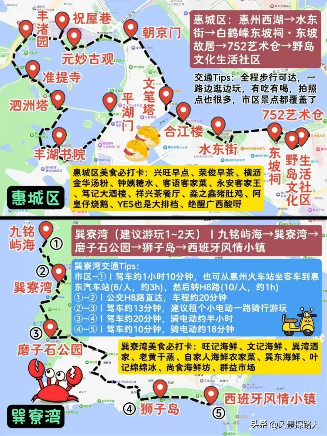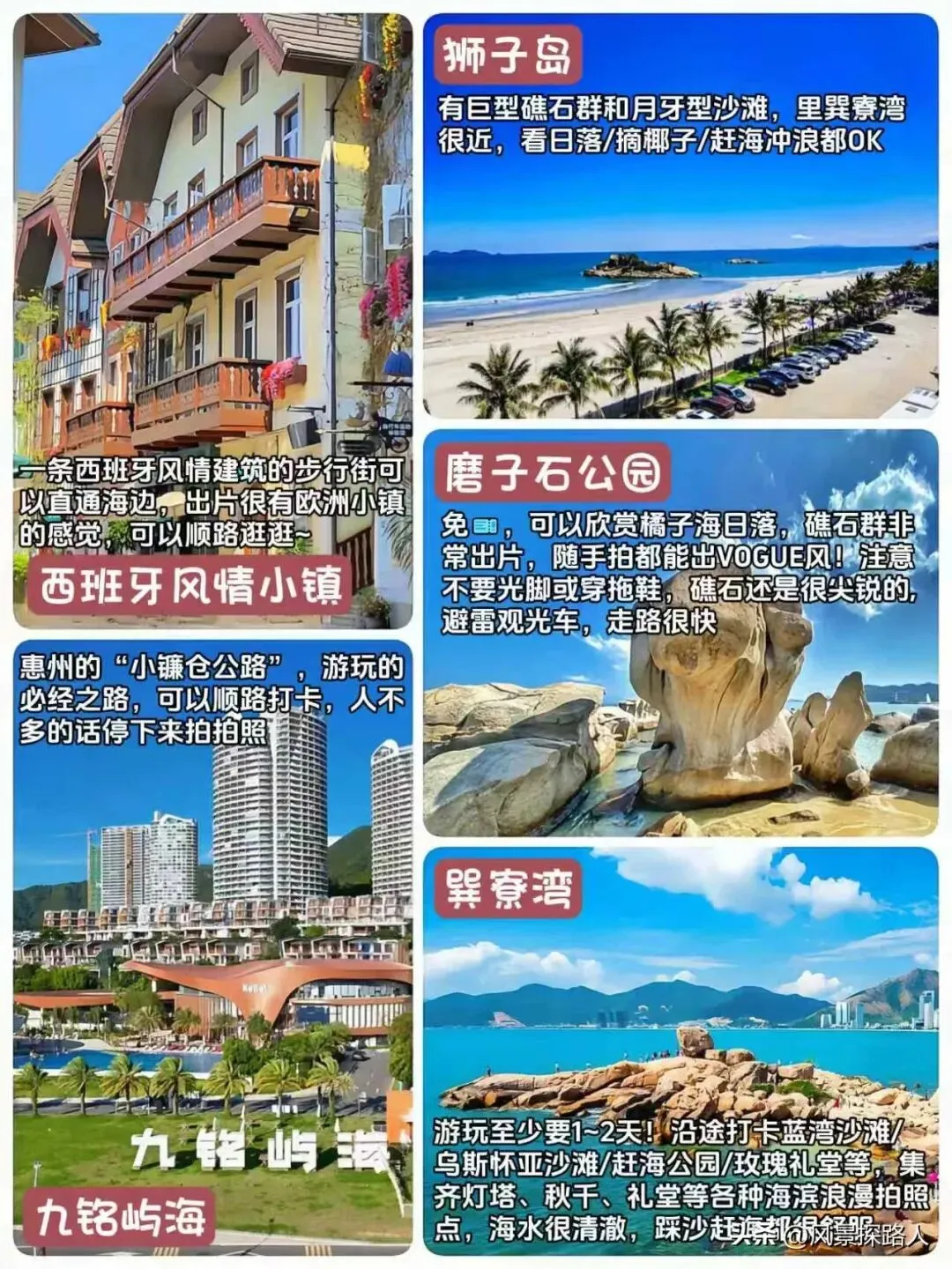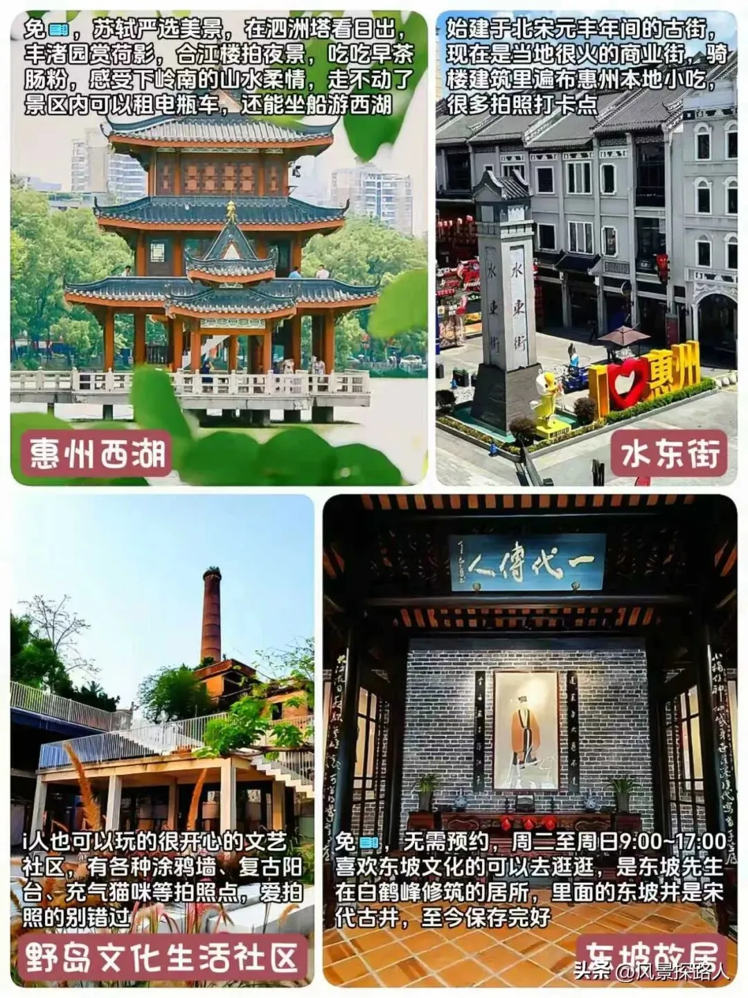 惠州旅游景点路线规划安排攻略推荐,行程中的景点包含惠州西湖、东坡祠、水东街、野岛社区、巽寮湾、磨子石公园、狮子岛、双月湾、海龟湾、西班牙小镇、红树林、盐洲岛、黑排角、湾仔沙滩、观音山、九铭屿海等多处热门必打卡景点。本篇攻略附带了多条线路规划、交通指南、美食介绍、游玩小提示可以参阅,希望攻略能对旅行达人和爱好者有所助力,如有不足之处欢迎广大资深友友在评论区补充完善,让更多前往惠州旅游打卡的友友行程更便捷和省心。