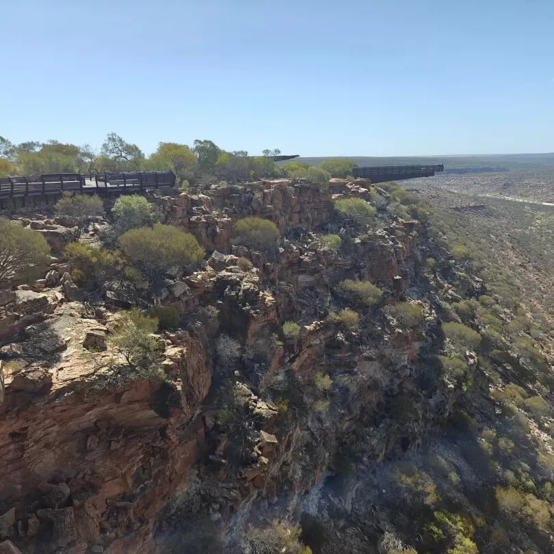 书接昨日。我们在粉红湖及其相距1.1公里的厕所附近走马观花之后,继续上路,沿着海边公路开到Kalbarri小镇。