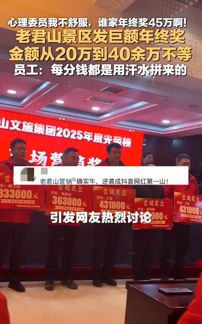 网传老君山景区发巨额年终奖:员工领到20万至45万元奖金!网友:“舍得给钱才有好创意……”