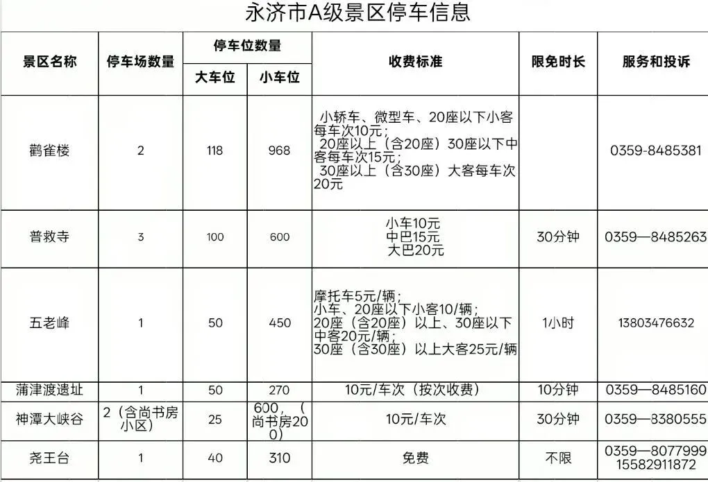 各景区停车场车位数量有限,收费标准及限免时长不同,建议绿色出行,优先选择公共交通,自驾游客可提前1-2小时抵达寻找车位。