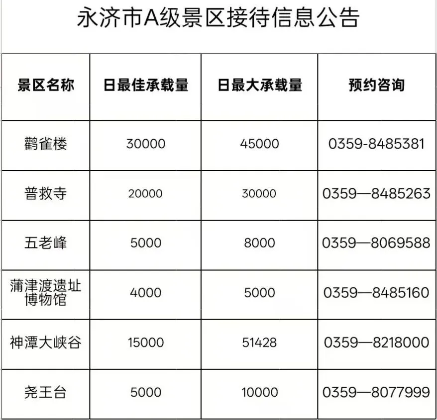 新春佳节将至,为让大家在永济市度过一段舒心惬意的旅程,结合各景区接待服务能力,特此温馨提示: