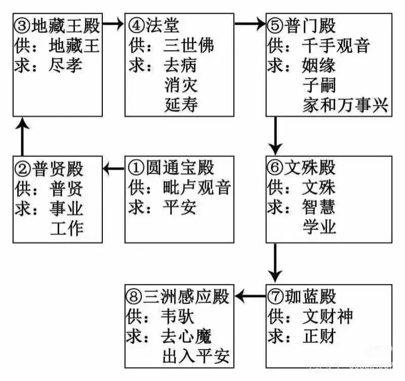 6、许愿:通常你要记得告诉佛祖你叫什么,家住何处,有何事相求,事成后何处还愿;大多数信士不管来到哪个殿前直接就磕头许愿,实不知佛菩萨有求必应,有求才有应.如果我们都不知道自己求的是哪位佛菩萨那么佛菩萨怎么应呢?所以当自己跪拜时请先了解佛菩萨名号;