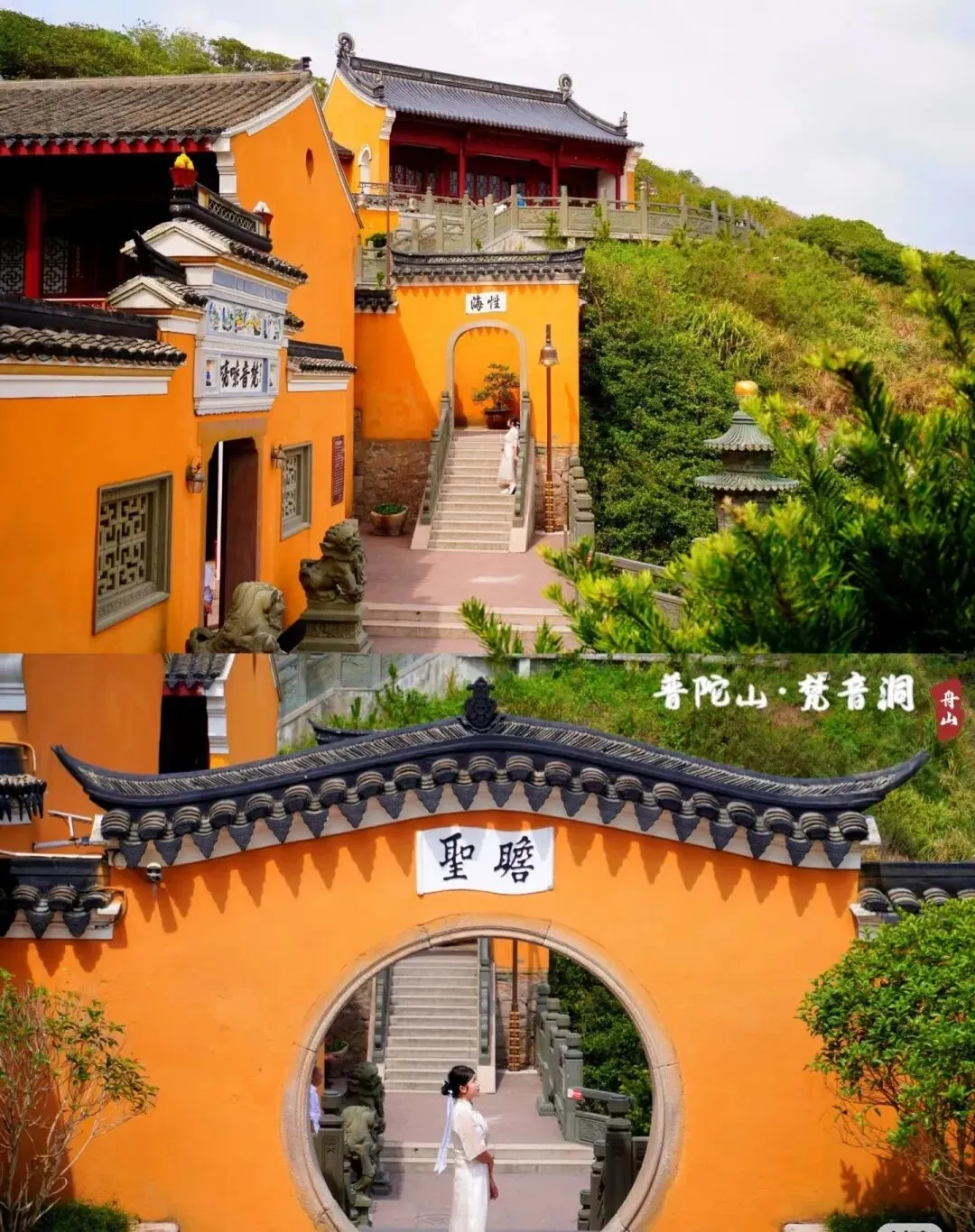 梵音洞是传说中观音菩萨现身的地方,佛经中描绘的“梵音海潮音,胜彼世间音”就是这里。