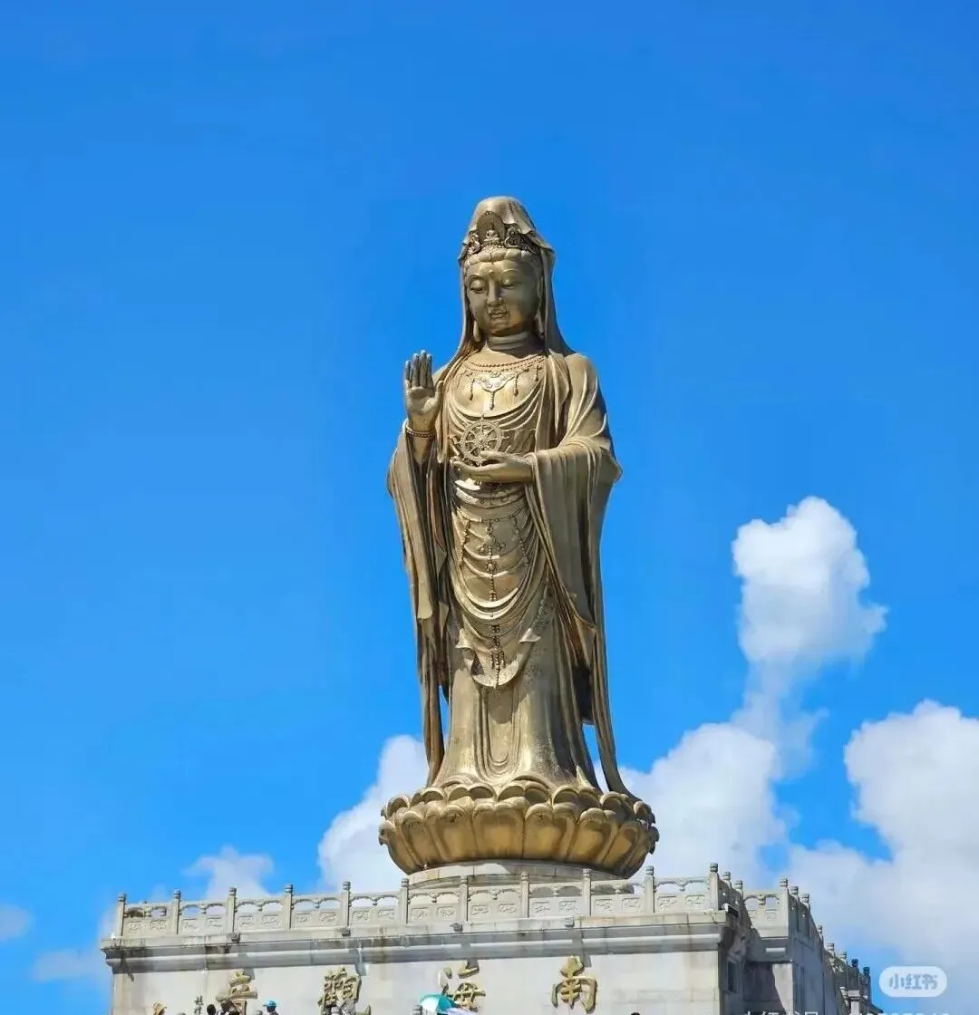 普陀山的南海观音立像,自1997年10月建成以来,便成为了这座佛教名山的新地标。33米的高度,仿金铜的精细铸造,在阳光下熠熠生辉,成为信仰的象征。