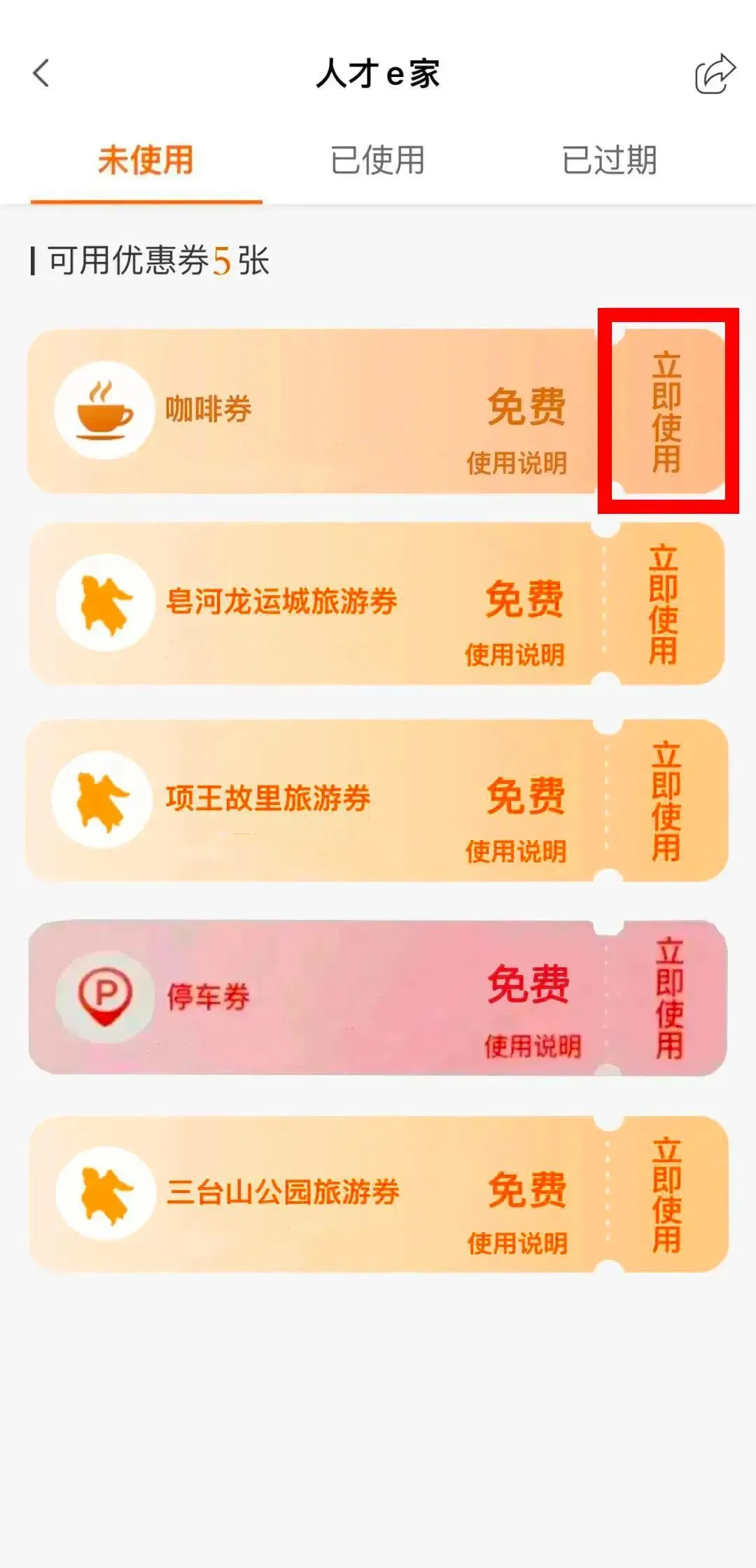 温馨提示:使用人才券前,请仔细阅读每张券码右侧的使用说明。