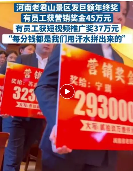 河南一景区发巨额年终奖,有人领到45万!员工:每分钱都是用汗水拼来的