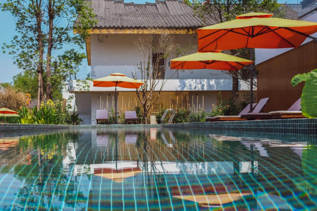 简约的设计风格,搭配露天小院,隆兴镇荷印.今夕温泉度假民宿,让你一秒穿越到江南小镇。这里田园气息环绕,惬意悠然,推开窗就能尽情感受大自然的美。