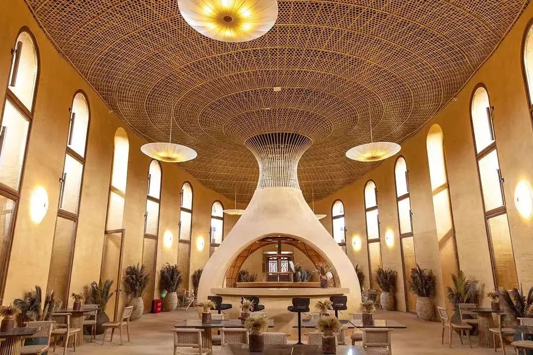 千里走单骑·大地之眼位于稻乡渔歌景区内。民宿取材于当地的水稻种植文化,将这座建筑设计成了一粒稻米的形状,寓意为“发现万亩良田美景的双眼”,此地也是来景区必打卡之地,无论是中式蜿蜒重叠的屋檐,还是土耳其风格的时尚内部空间,都深深吸引着游客。