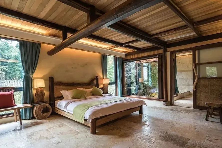 隐于竹林深处的乡野美宿,其建筑创意来源于无限符号∞,代表着融合与无限。整个建筑运用了原木、竹艺和落地玻璃窗。8个精品独栋房间错落有致地分布在小山丘上,360°绿意围绕自然的元素在这里和谐共存。