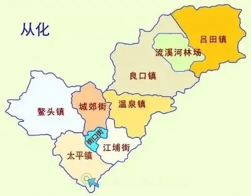 从化区辖3个街道、5个镇:街口街道、江埔街道、城郊街道、温泉镇、良口镇、吕田镇、太平镇、鳌头镇。另辖:黄龙带水库、大岭山林场。区政府驻街口街道新城东路。