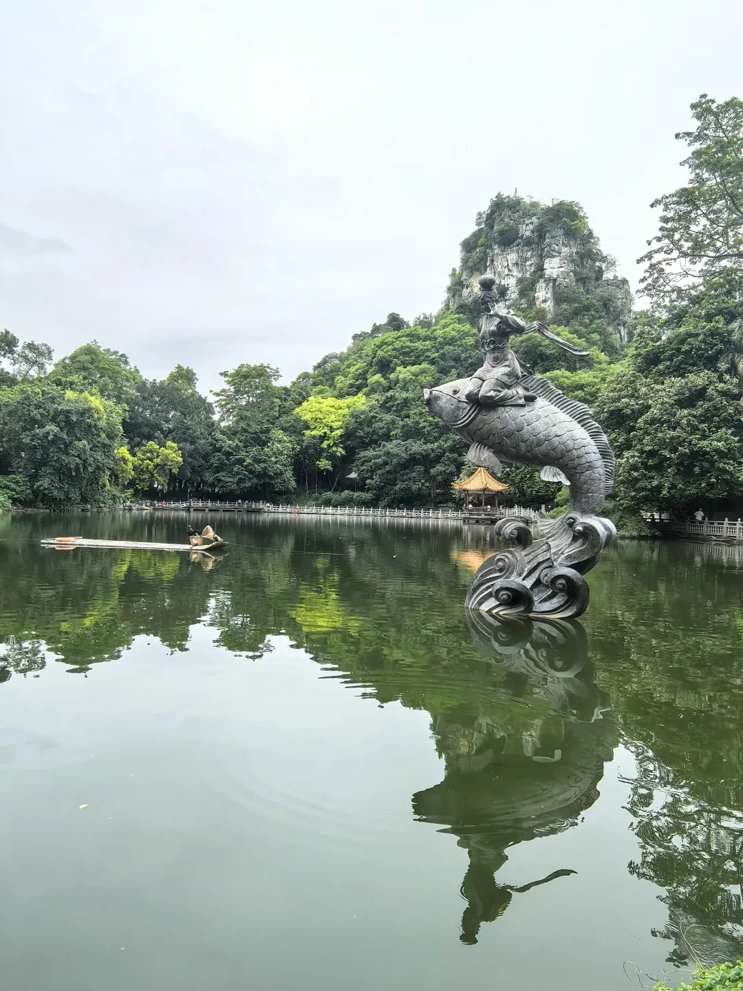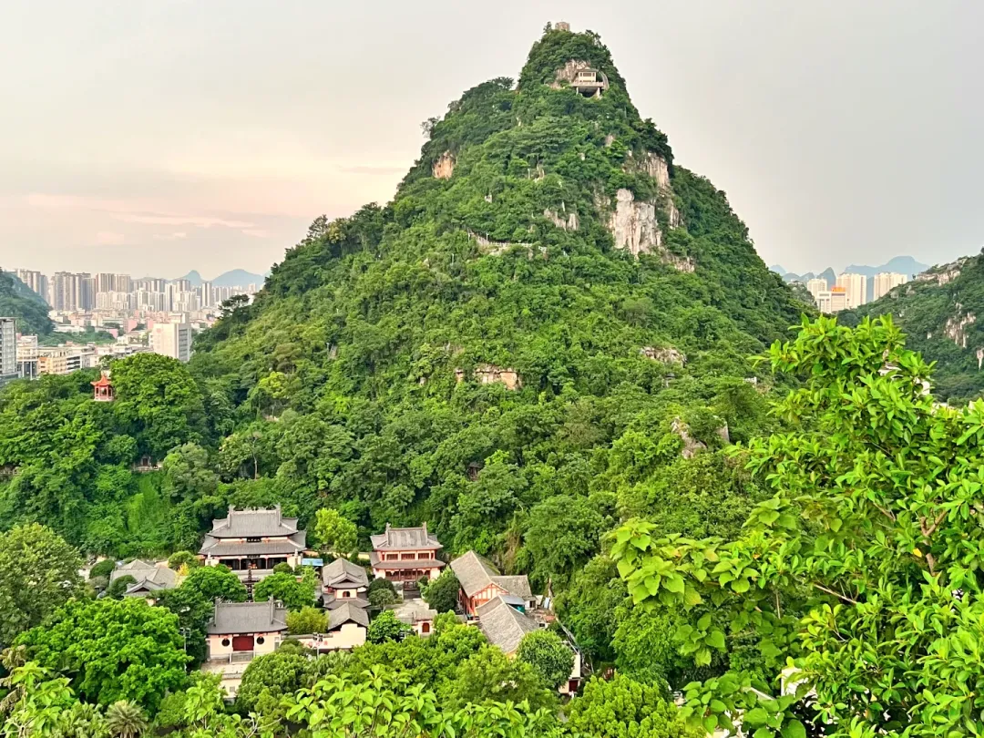 导游解说: 各位朋友,现在我们来到了鱼峰公园,它位于柳州市鱼峰区,是刘三姐文化的发源地。鱼峰山海拔156米,传说中壮族歌仙刘三姐在此传歌、升仙,山上至今保留着三姐岩、对歌坪等与刘三姐相关的景点。