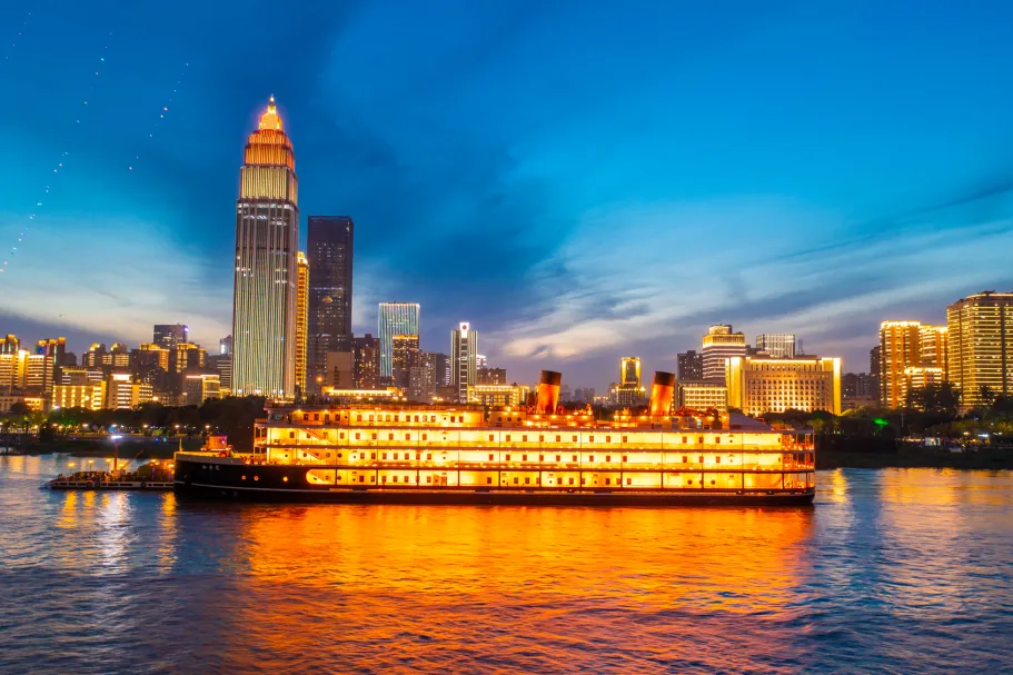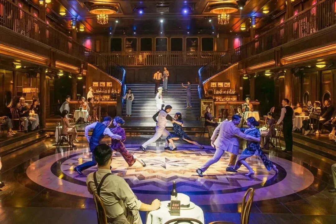 《知音号》的根基,是对武汉城市记忆的精准还原。它以民生公司“江华轮”为原型,复建了复古蒸汽游轮、汉口风情老码头和两座栈桥,将演出场地从封闭剧场延伸到真实江景中。游轮内部1:1还原了二三十年代的舞池、酒吧、船舱、书信、老照片、怀表等老物件泛着岁月光泽,既是道具也是历史线索。码头与栈桥的整体设计,截取了近代武汉的繁盛片段,让游客一踏入就仿佛穿越回百年前的大汉口,为沉浸体验筑牢基础。