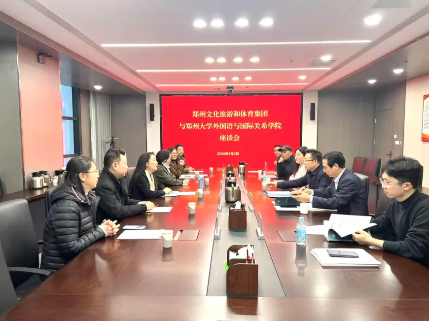 2026年是实施“十五五”规划的开局之年,为凝聚校友力量,赋能学院发展,2月2日上午,郑州大学外国语与国际关系学院高晓玲院长率队访问了郑州文化旅游和体育集团有限公司(以下简称“郑州文旅体集团”)。郑州文旅体集团党委书记、董事长耿颍强,党委委员、副总经理贾广祥,郑州旅游发展投资集团有限公司党支部书记、总经理孙春霞,副总经理韩庄岩,郑州黄河鑫源旅行社有限公司总经理陈国辉,河南炎黄文化国际旅行社有限公司副总经理、我院95级校友李永举接待了高晓玲院长一行。