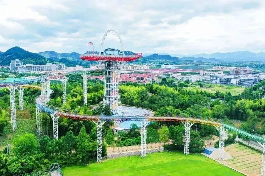 UFO是安吉田园嘉乐比景区,2021年打造的一个大型高空综合体项目,酒店和乐园一体,刷脸出入乐园