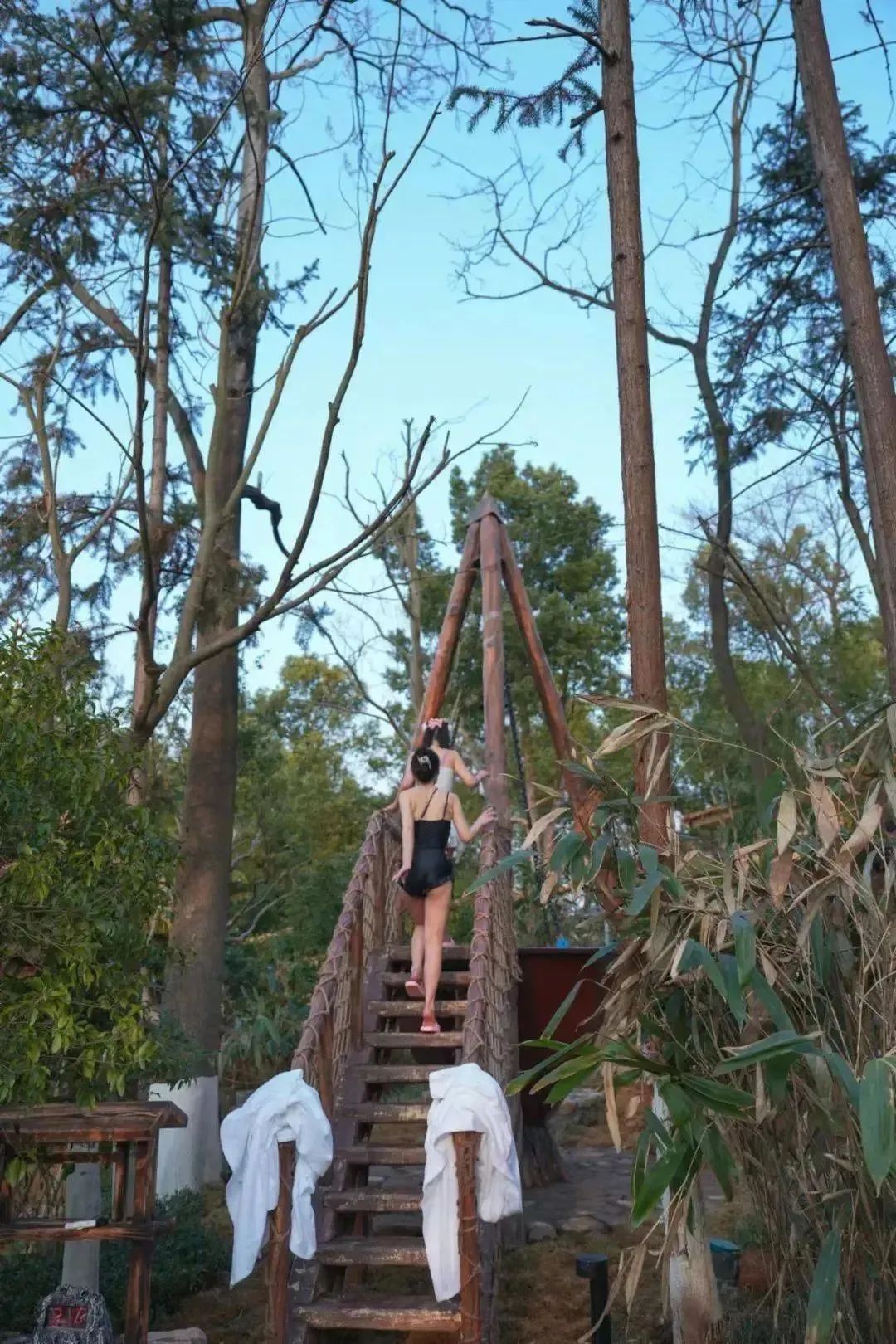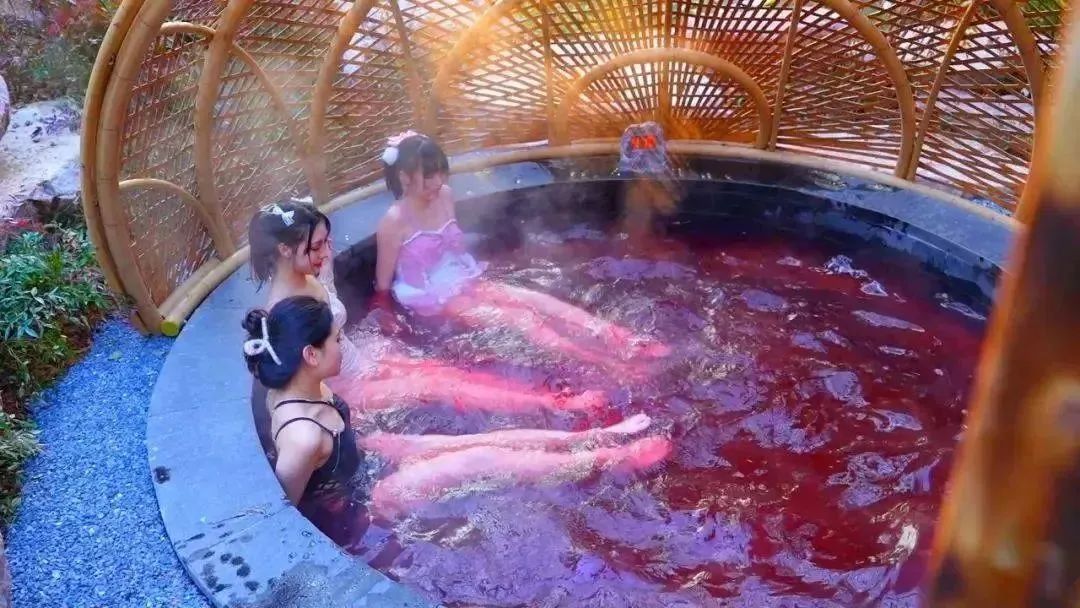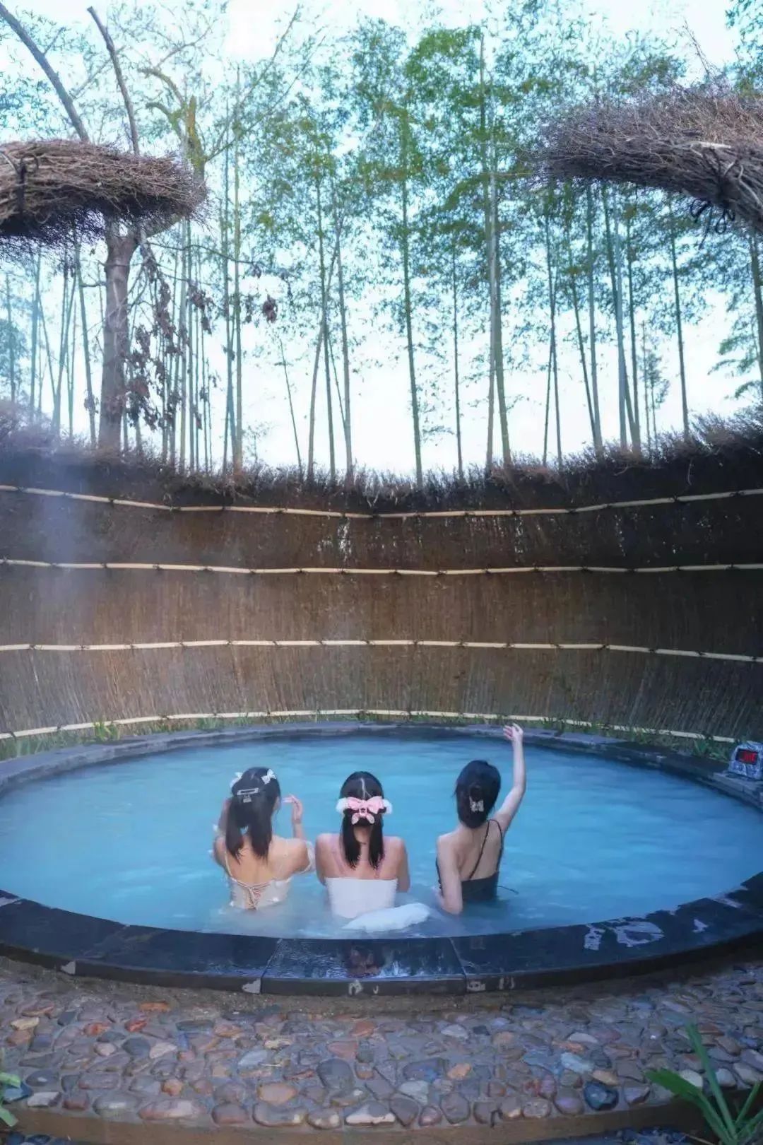 汤池设计以竹林为屏,溪石为路,乌篷为盖,雾气氤氲,渺渺飘忽间犹如置身仙境,随手拍都是ins大片。