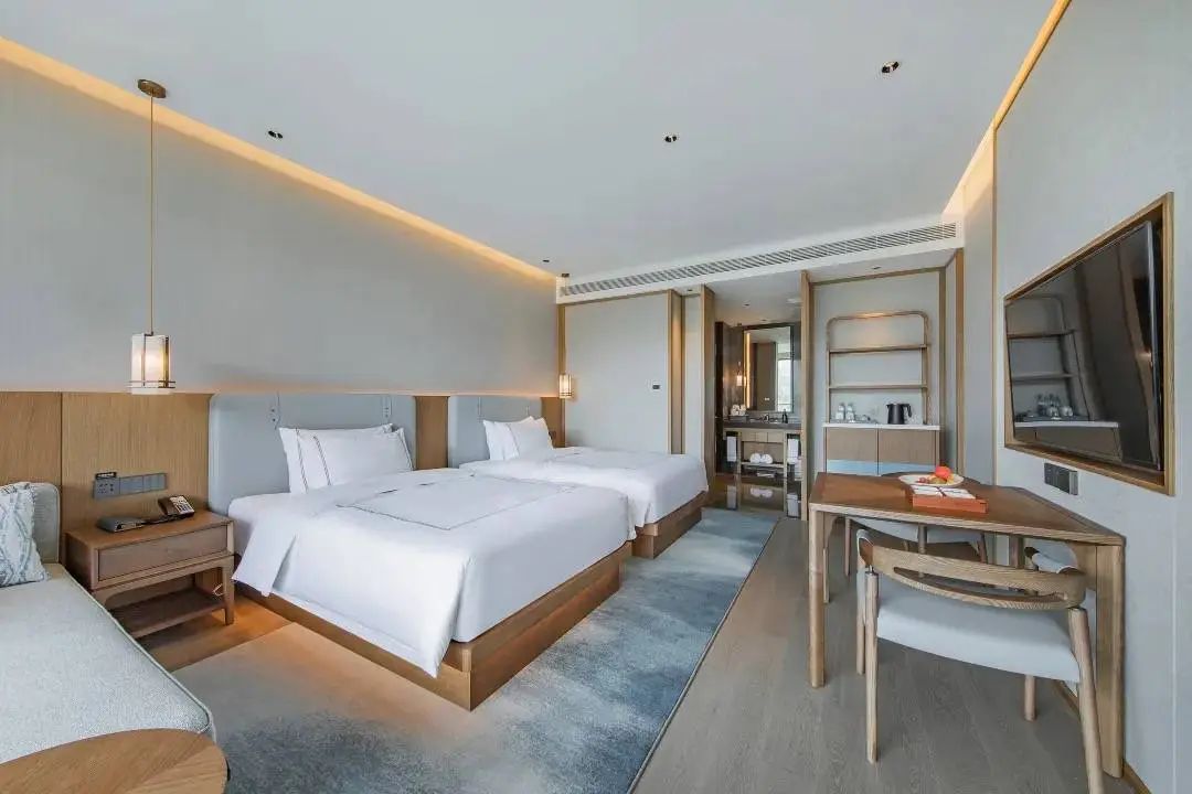 本次入住的是酒店的田园雅致双床房,空间宽敞,还有超大的落地窗,室外景观无敌~舒适的床品,让每一位宾客轻松拥有高质量睡眠,酣然入梦~