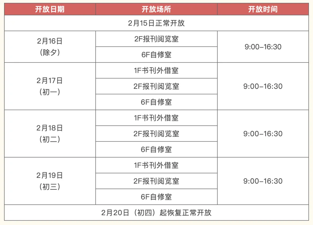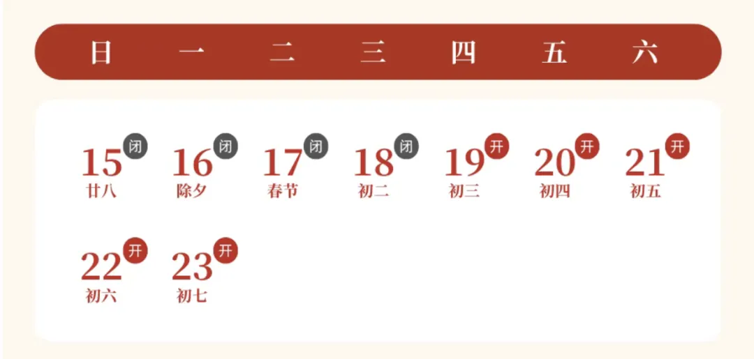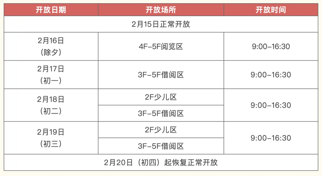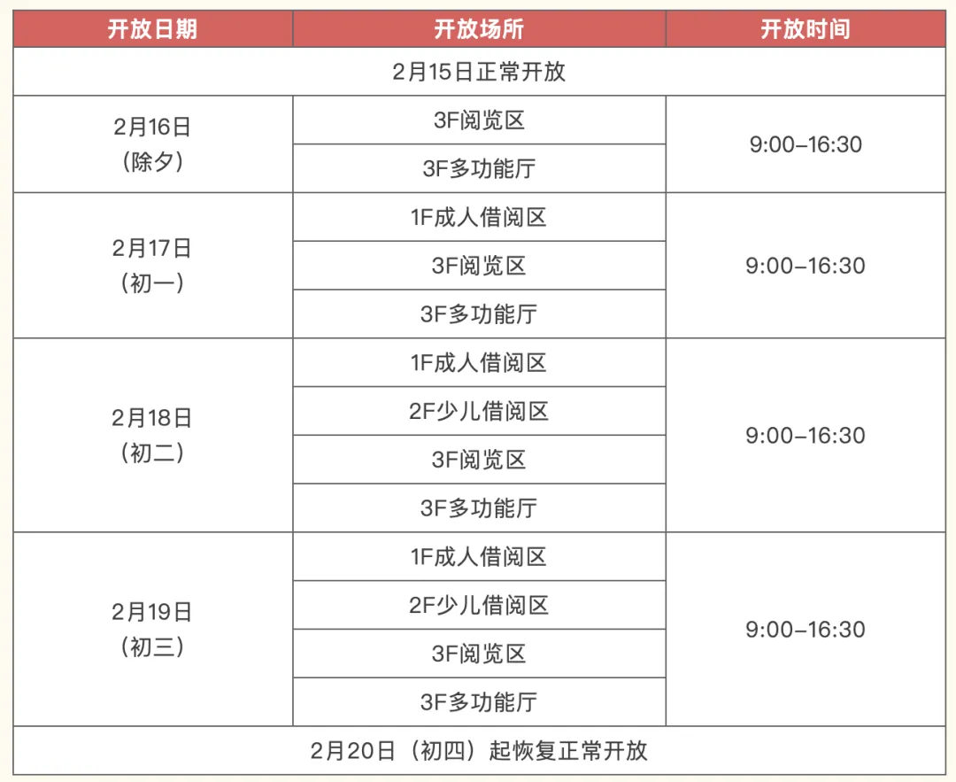 2月20日至2月23日(即年初四至年初七)开放时间:每日8:30-16:00