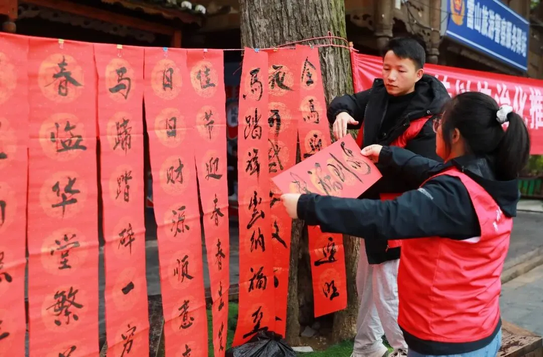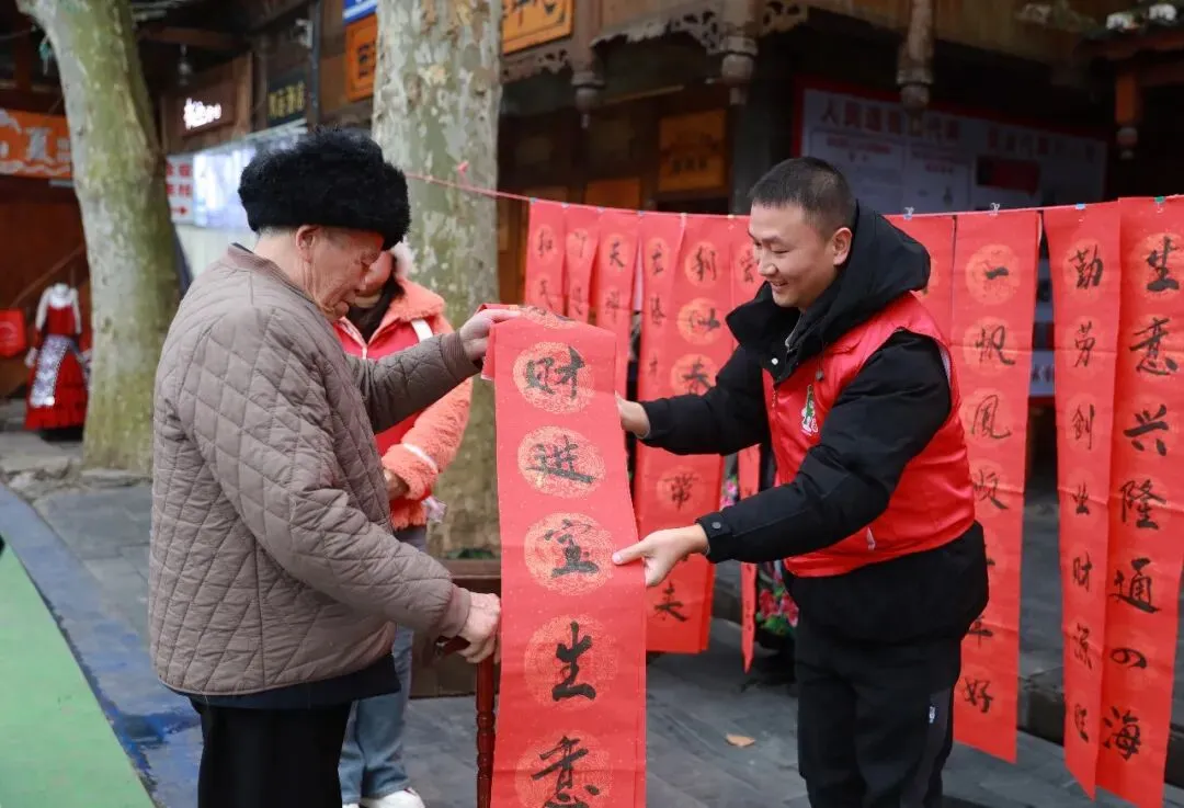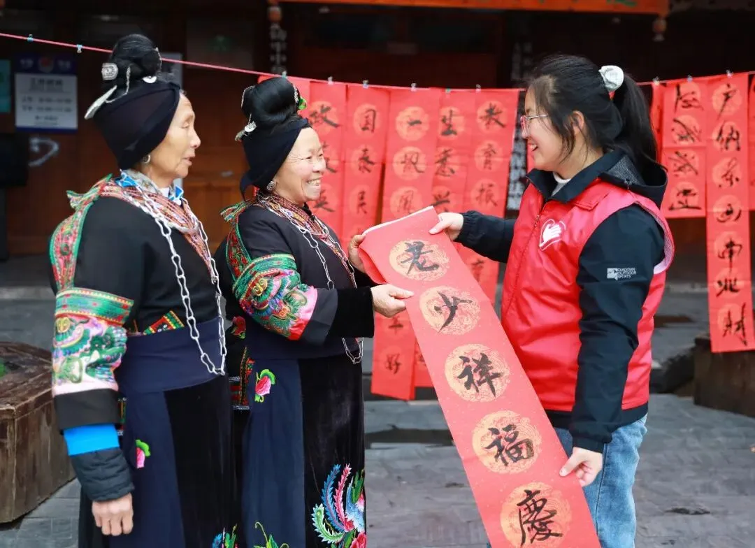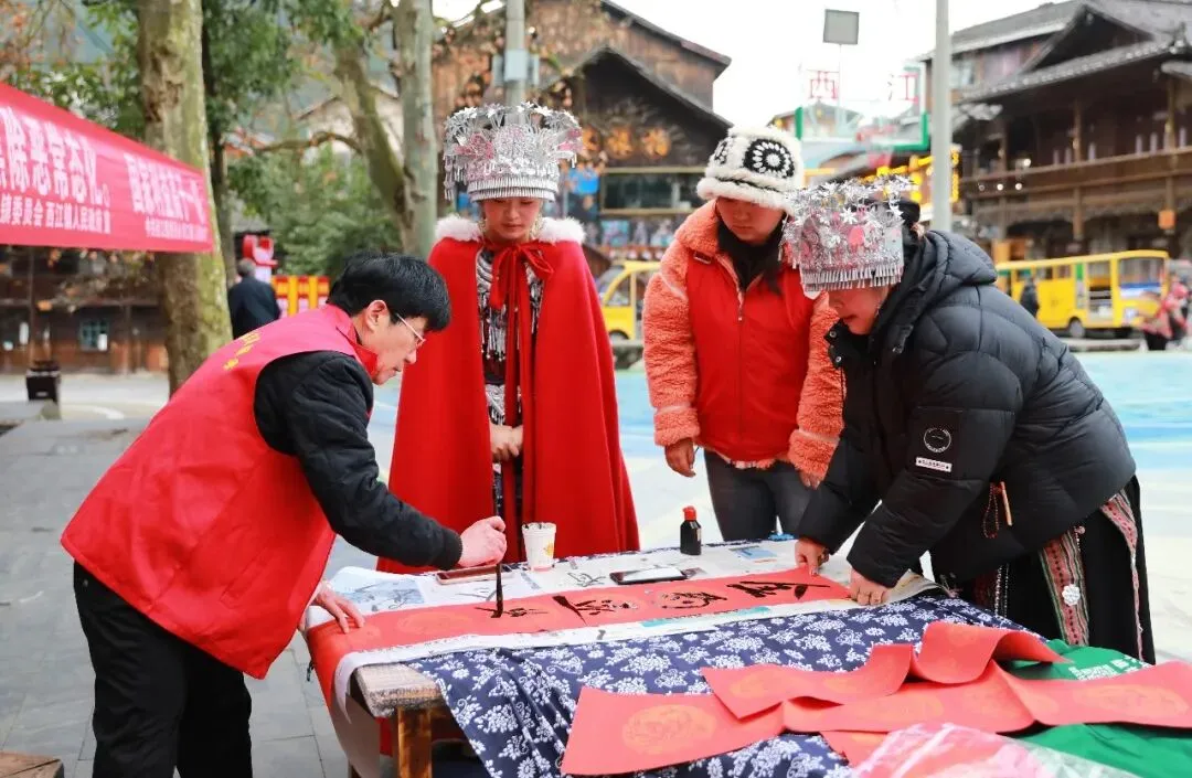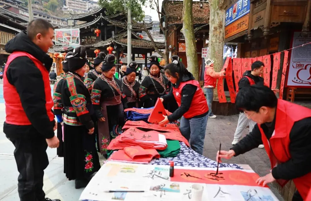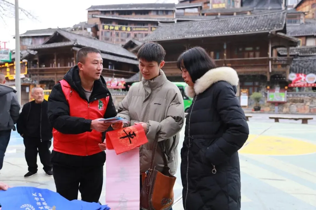 【图说西江】送“福” 进景区近日,雷山县西江镇人民政府组织志愿者在西江千户苗寨景区开展送 “福” 进景区主题活动,现场年味十足。村民和游客纷纷驻足参与,领取这份特别的 “文化年礼”,在浓郁的苗寨民族风情里,提前邂逅喜庆祥和的新春氛围。此次活动既丰富了景区的新春文化体验,也将美好的新春祝福送到了当地群众与景区游客手中。
