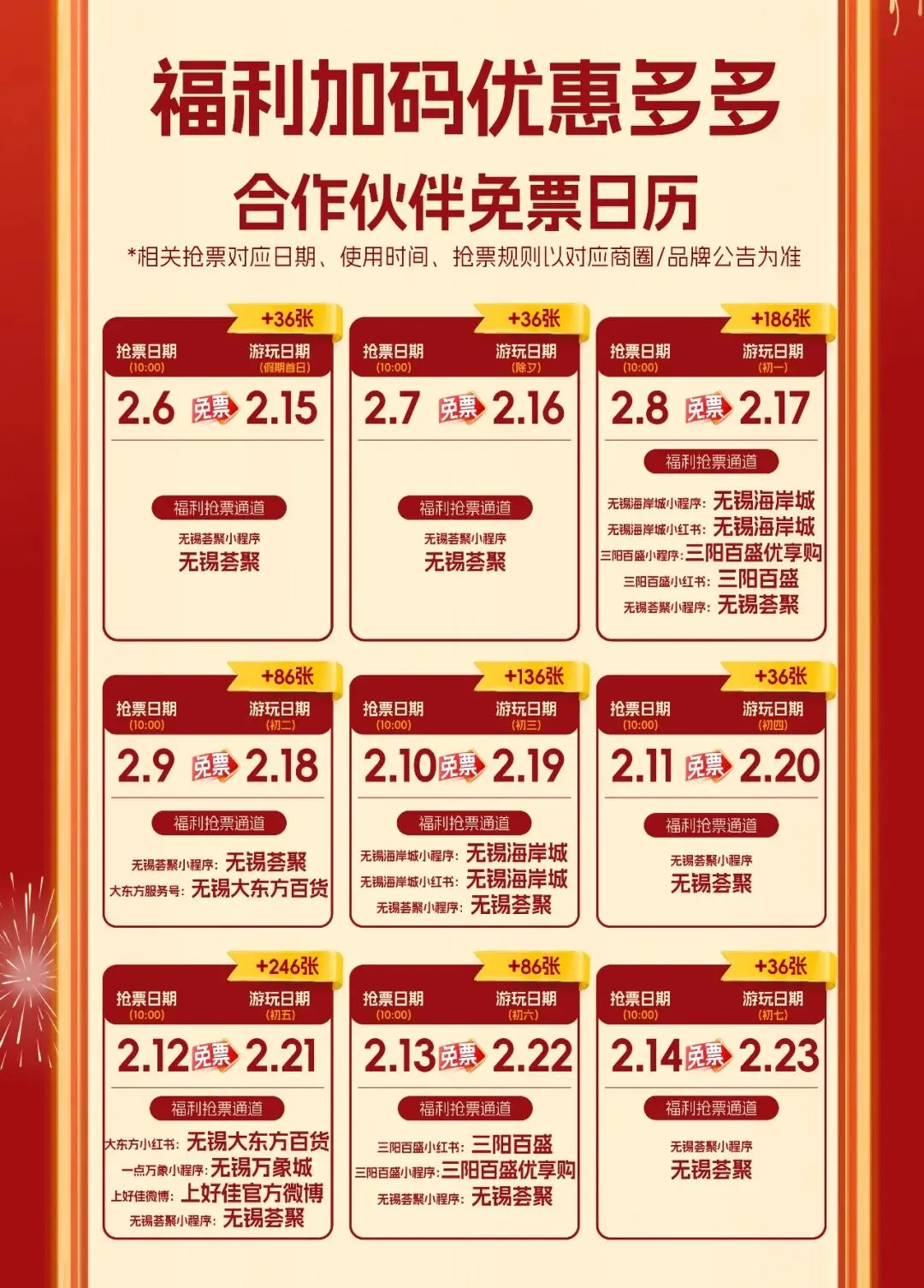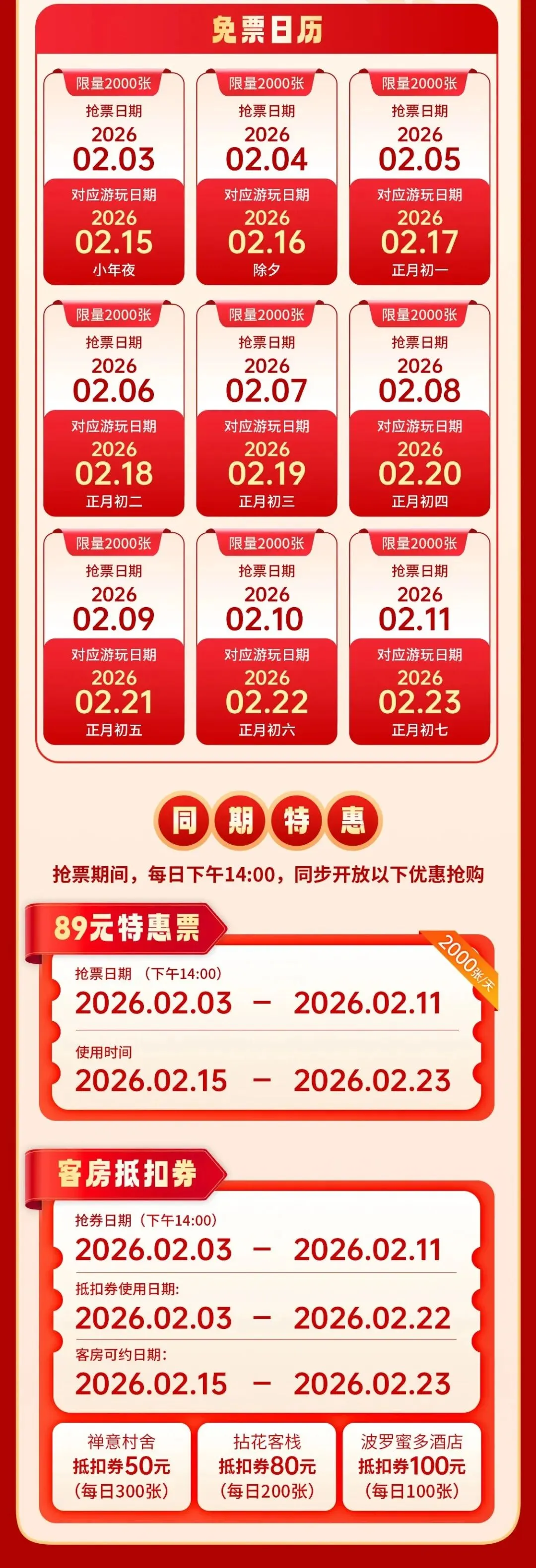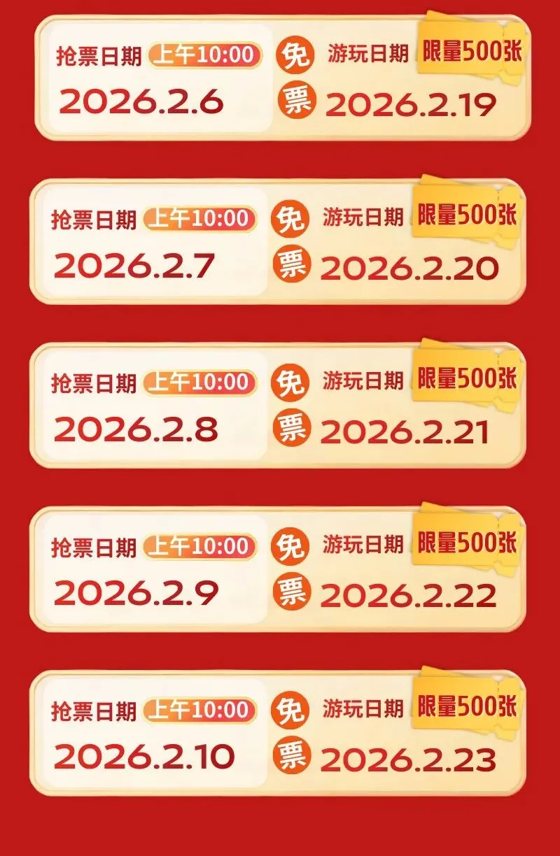 2026年2月5日至2026年2月13日,每日上午9:00准时开启抢票通道,抢完即止。