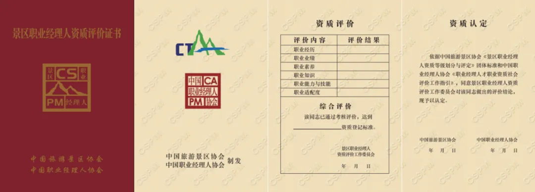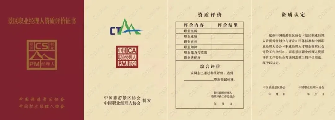 根据《景区职业经理人资质等级划分与评价》(T/CTAA0004-2021)标准及教材大纲要求,景区职业经理人资质须完成景区管理的基础知识、通用能力、职业技能三大模块的知识培训,本次培训班分为线上和线下两个阶段,即日起至2026年3月20日开展第一阶段线上课程培训;2026年3月24日至27日开展第二阶段线下课程及实践培训,计入继续教育48学时。对通过职业能力考核且考试合格的申请人员,由中国旅游景区协会和中国职业经理人协会联合颁发《景区职业经理人资质评价证书》,以此作为景区管理专业人员接受继续教育培训的证明。