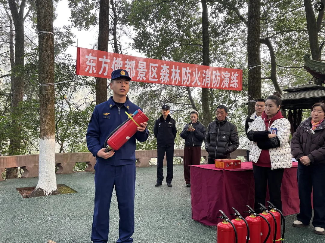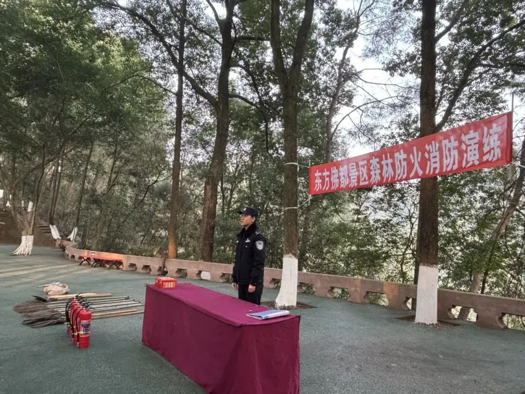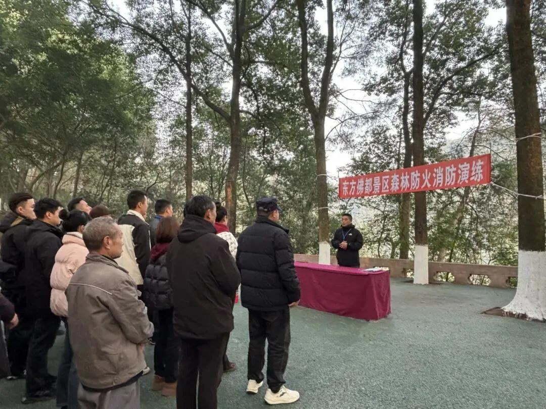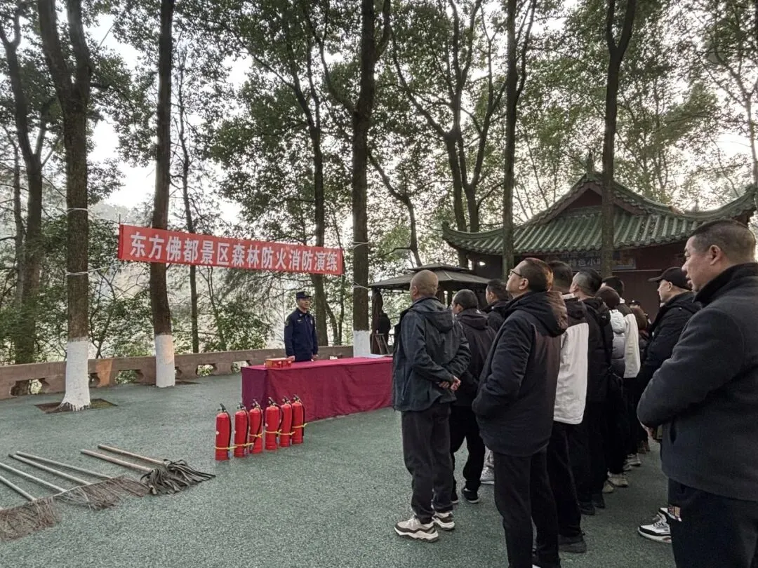 为全面提升景区森林防火与应急处置能力,2026年2月6日上午9:30,东方佛都景区组织全体员工,在景区微型消防站,开展了2026年度冬春季森林防火消防演练活动。