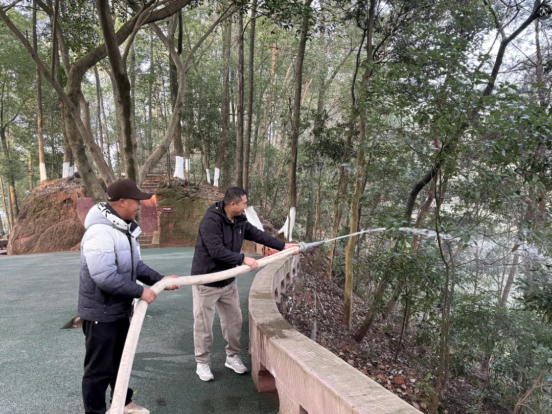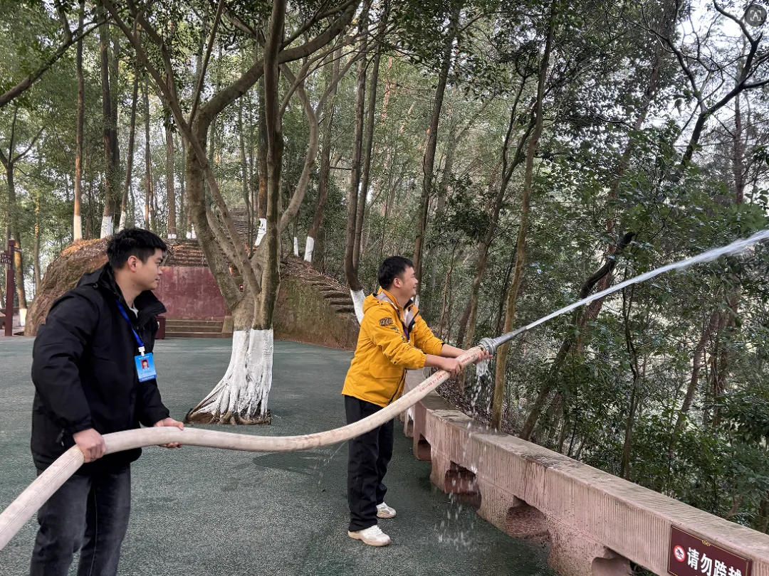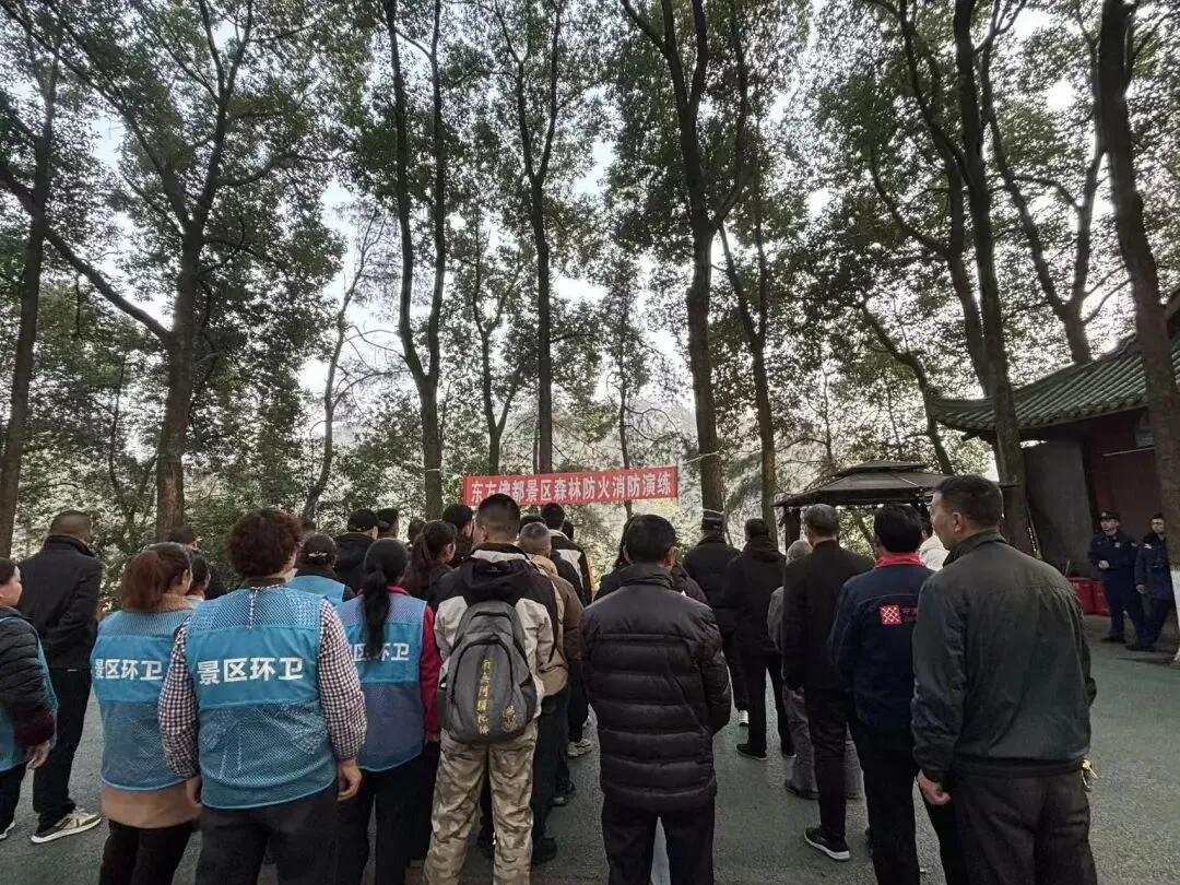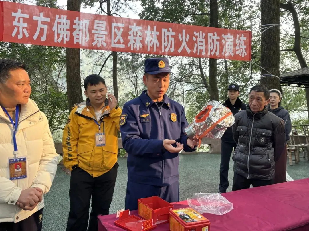 为全面提升景区森林防火与应急处置能力,2026年2月6日上午9:30,东方佛都景区组织全体员工,在景区微型消防站,开展了2026年度冬春季森林防火消防演练活动。