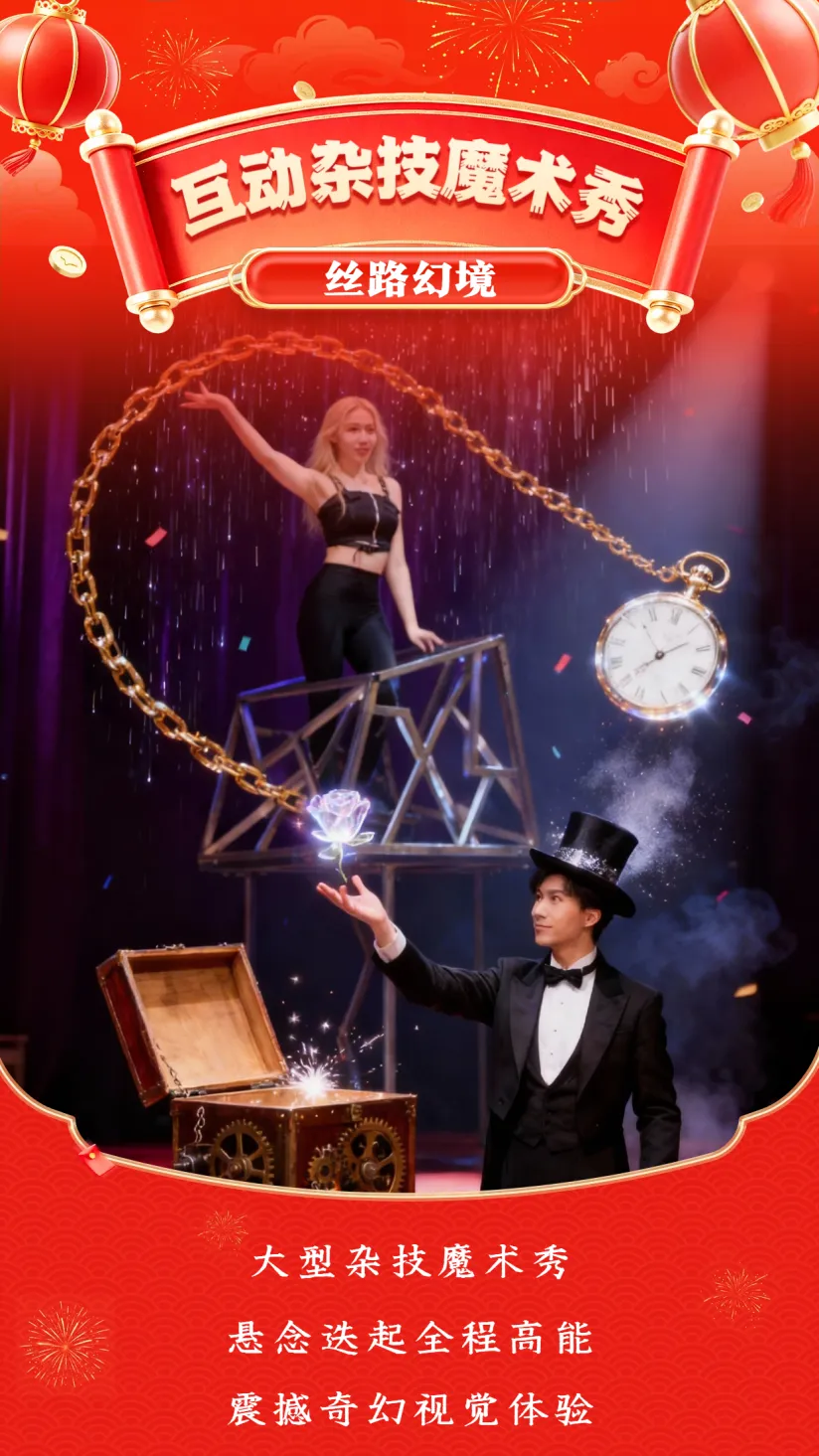 新春欢乐季活动期间,景区九大主题狂欢、三大王牌演艺以及新春欢乐大巡游活动齐上阵,大型国风百老汇音乐剧《丝路之声》,让一家老少在恢宏乐章中,亲耳听见历史的回响,共同解锁深植于血脉深处的文化记忆;大型户外实景特技演出《李希霍芬传奇》开放式排演,沉浸式剧情搭配惊心动魄的特技表演,揭开丝绸之路上被尘封的神秘篇章,更有专为春节埋藏的温情彩蛋,为游客献上独一无二的新春贺礼。