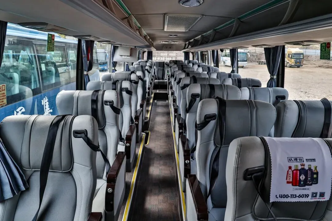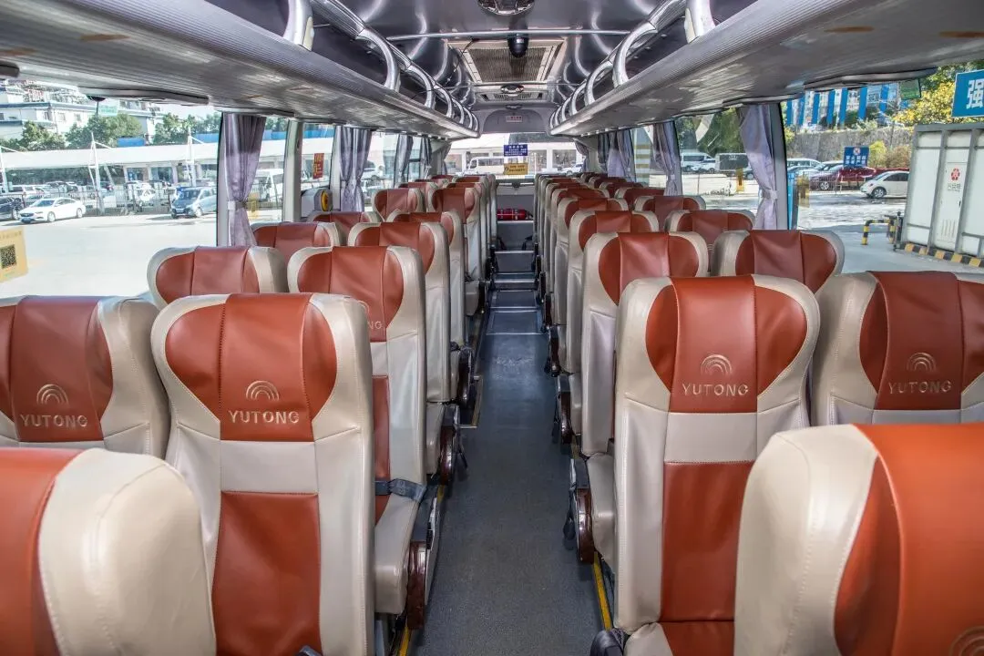 ②选用“2+1”豪华保姆大巴,一排三座,有37个乘客座位,座椅可调节,座椅前排有脚踏板。