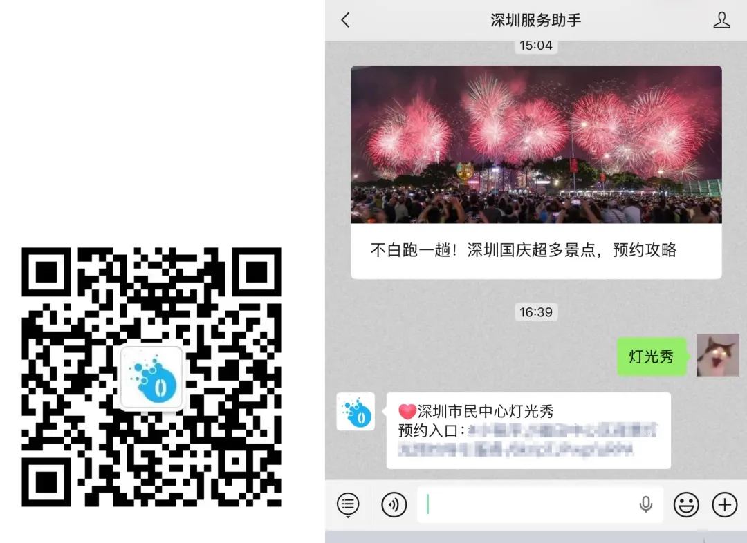 入口:点击【深圳服务助手】,进入后台聊天框发送关键词“灯光秀”