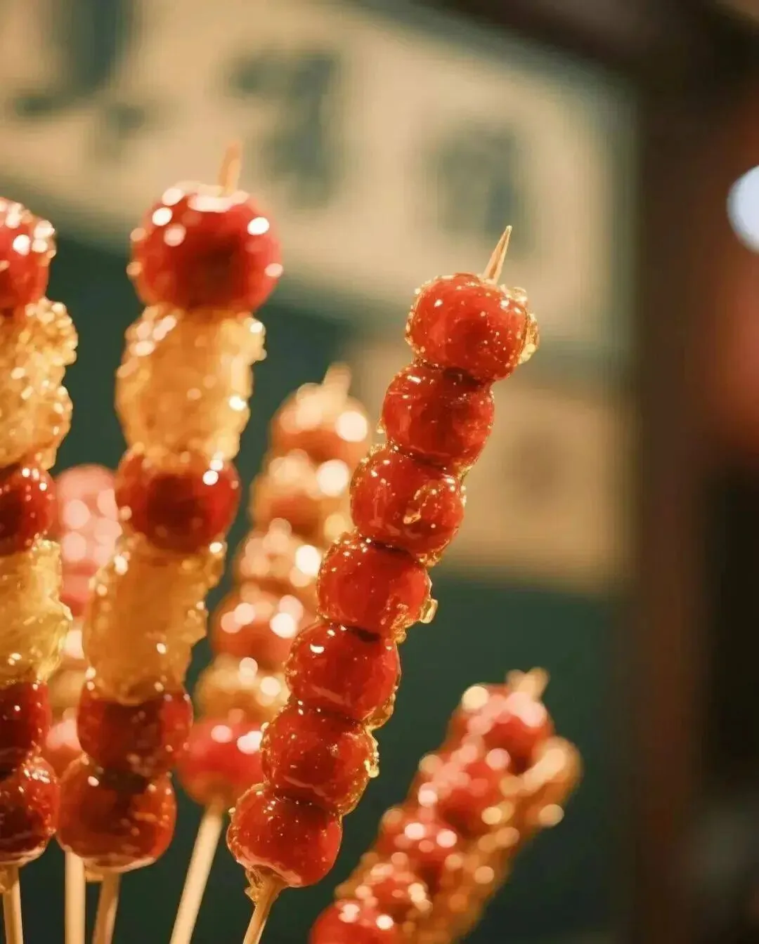糖葫芦、关东煮、芝麻球、春卷、炸虾片、老糖果...