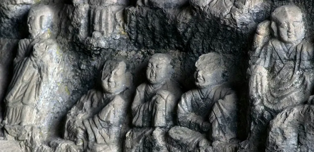 据洞口碑记记载,洞内依壁雕刻有3000余座罗汉像,从残碑的记载,推断是北宋熙宁元年,即1068年左右。洞内现存有北宋石窟造像遗迹。该洞长约60米,宽约7米,高约10——15米不等,洞北入口处,横卧一道残碑。碑首刻有1佛2天王,碑名为“泽州晋城县招贤馆修佛堂记”,落款为“北宋神宗熙宁元年”。在洞北半部左壁上,依壁浮雕有小型罗汉像3000余尊,或坐、或卧、或立、或走,姿态各异,既有情趣,让我们能够欣赏到宋代石窟造像的艺术风貌。这里没有路,是从灌木丛中和圪针窝,钻上去才能找到。喜欢探险的朋友可以到此一游。