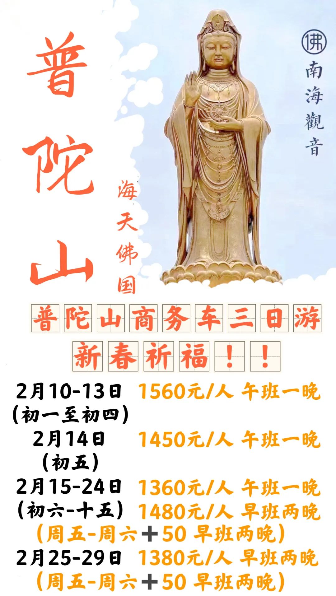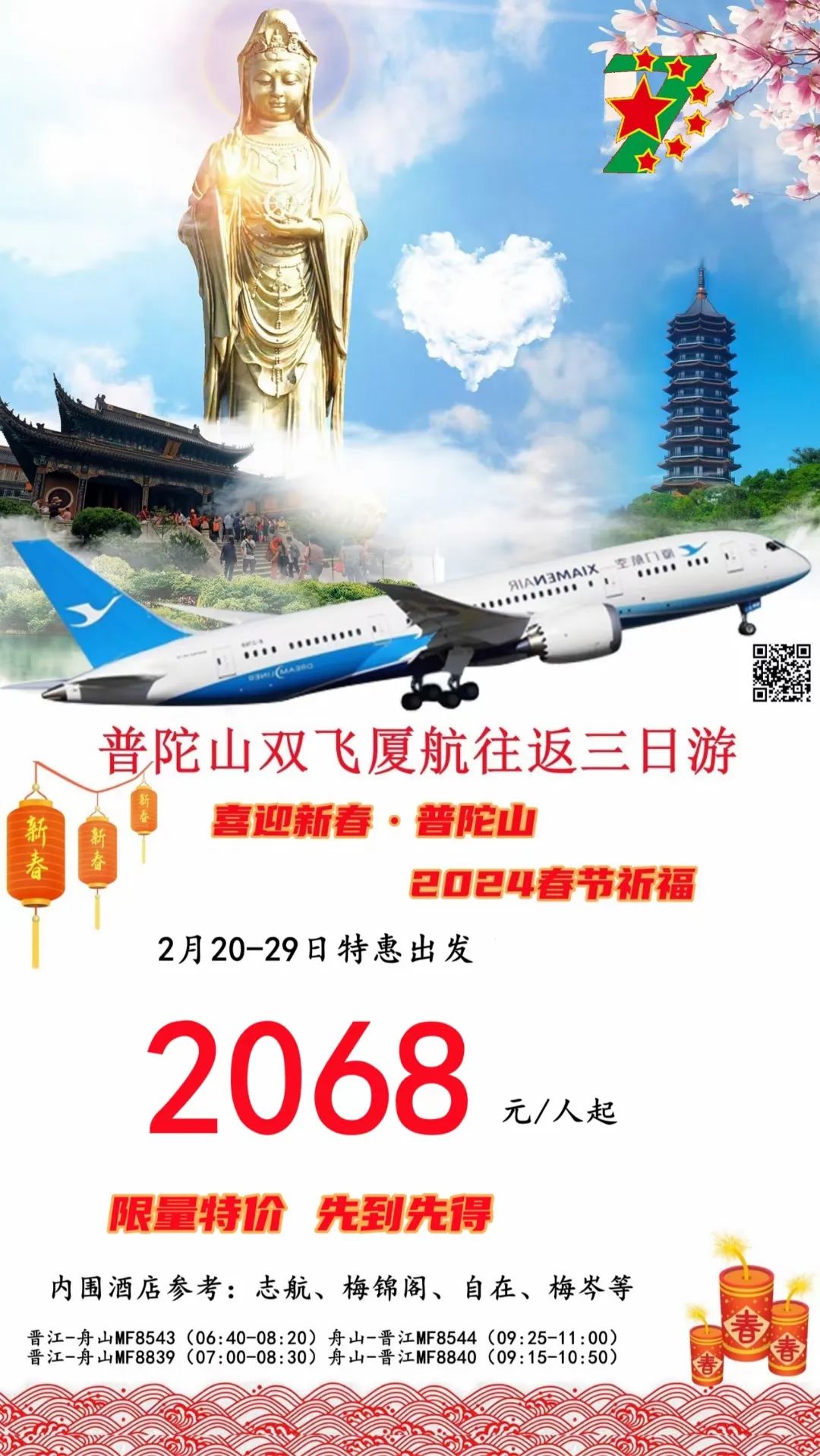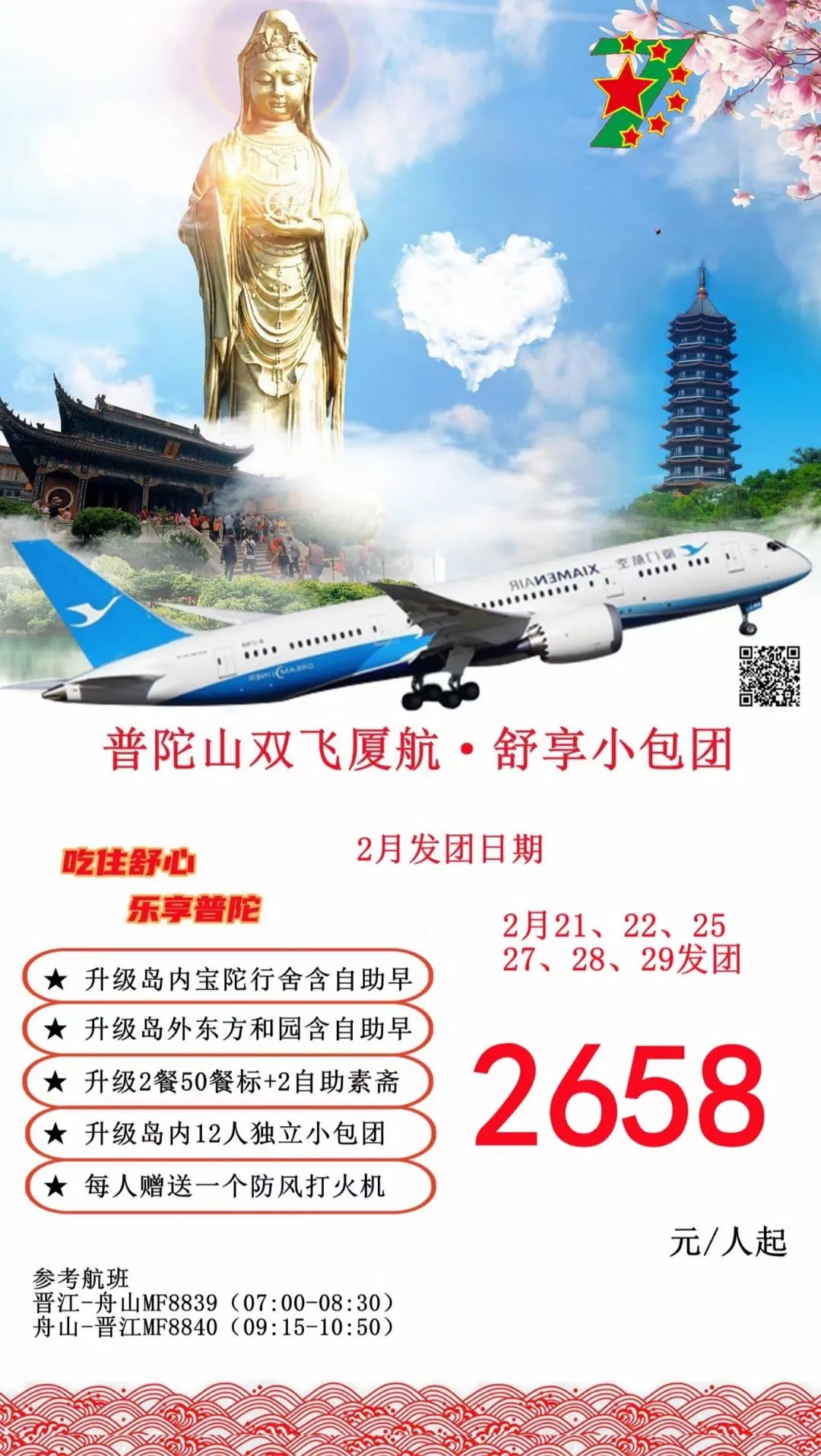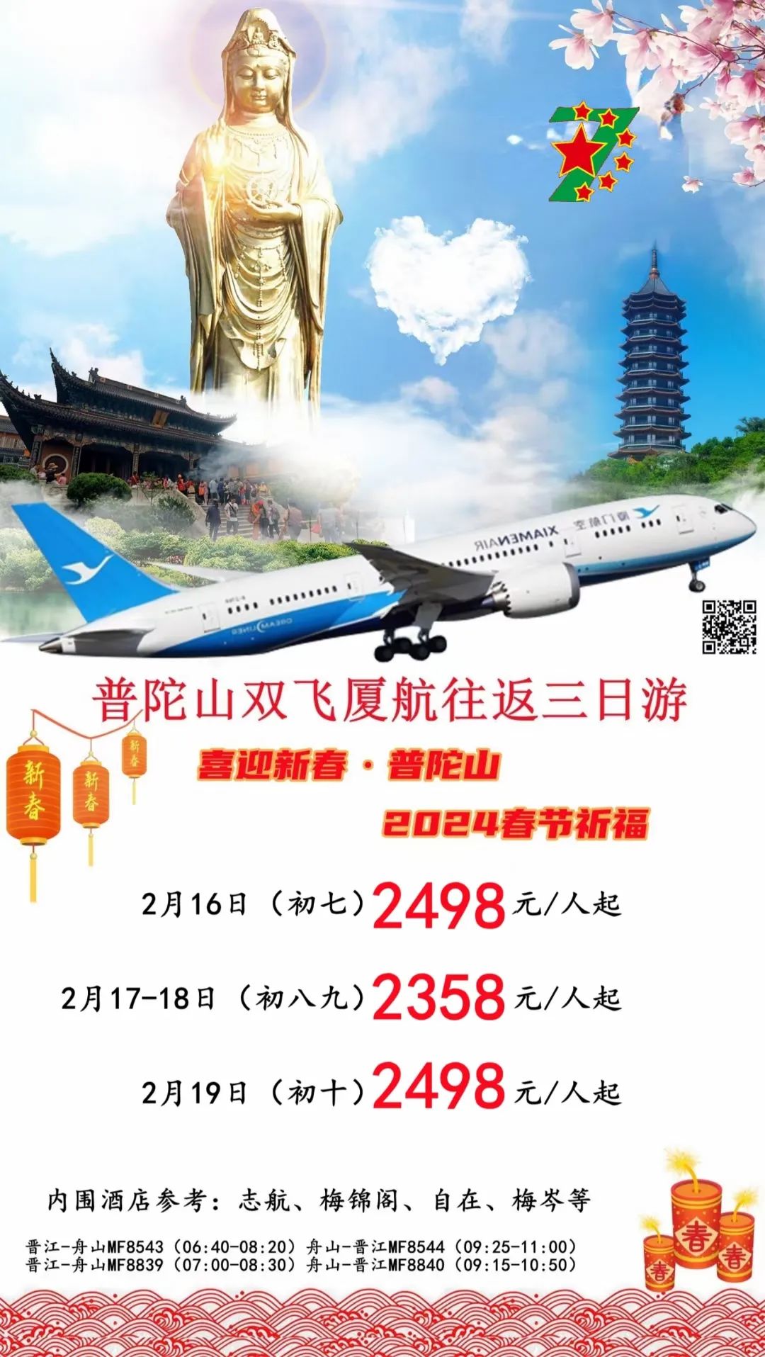 您现在的位置是:首页 > 国内旅游目的推荐 > 正文 国内旅游目的推荐 【星期七·春节期间】省内外周边出游路线 admin2024年02月11日 23:23:06国内旅游目的推荐125 活动组织星期7(超越)旅游周边一日游/省内游/国内外游!为公司;学校;毕业旅行;亲子活动等四大佛山朝拜公司提供正规合同与发票;旅游签证等资料 活动亮点:2024春节出游省内周边游汇总:?【一日游】【二日游】【动车班】春节晋江-普陀山往返双飞三日朝拜?火热报名中…☎春节期间更多散拼路线/包团定制路线;☎️欢迎各位来电咨询☎️?㊗️大家龙年越来越好,越好越来;越来越好! 转载请说明来源于"旅荐网",部分内容转载自网络,如有侵权请联系qlwl@foxmail.com删除 本文地址:https://www.15386.cn/post/9575.html 上一篇 2月份国内最精美的旅行地,有这5个足够了,景美人少温度适宜. 下一篇 2024全新招募·海南岛骑行 | 单车旅行,从好玩又深度的海南骑行开始! 相关文章 海南海口旅游必去十大景点游玩攻略,北纬20度的椰城,2026年3月海口全,从骑楼老街到雷琼火山,推荐收藏游玩 长春出发丨清明旅行,保姆级攻略(2) 交旅融合 | 春满集美路!这份公路旅行指南请查收↓ “参赛+旅游”两不误|大连热门打卡地+赛事交通指南 中国旅行指南-甘肃敦煌篇 兰州出发自驾!这6条小众路线,踏青赏花跑山全安排! 春回塞北 | 四月开园景区全攻略,一卡通带你抢先打卡! 2026三亚景点最佳游玩月份+4日自由行攻略!最近路线推荐 【99元定制】小羊军团新疆深度旅行定制方案 北京五一勞動節精選旅遊攻略|北京瑞鴿國際旅行社 Ruige International Service 发表评论 取消回复 评论列表 这篇文章还没有收到评论,赶紧来抢沙发吧~