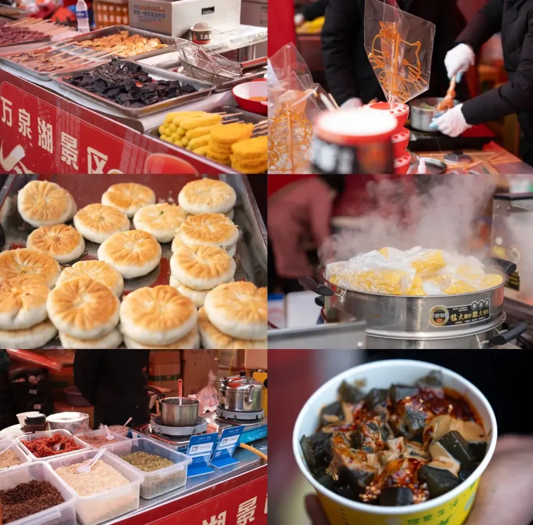 逛市集,寻年味!景区内搭设了趣味新春市集,汇集了各种特色小吃和趣味小游戏,让您在吃喝玩乐中感受新春烟火气~