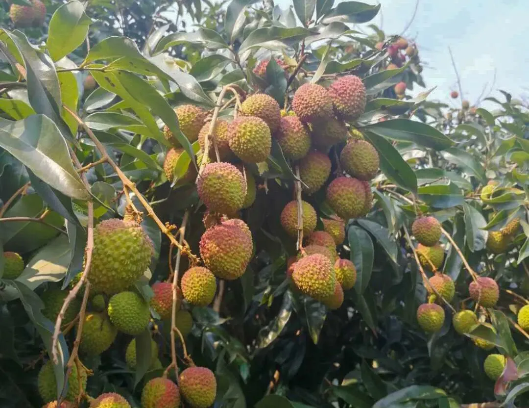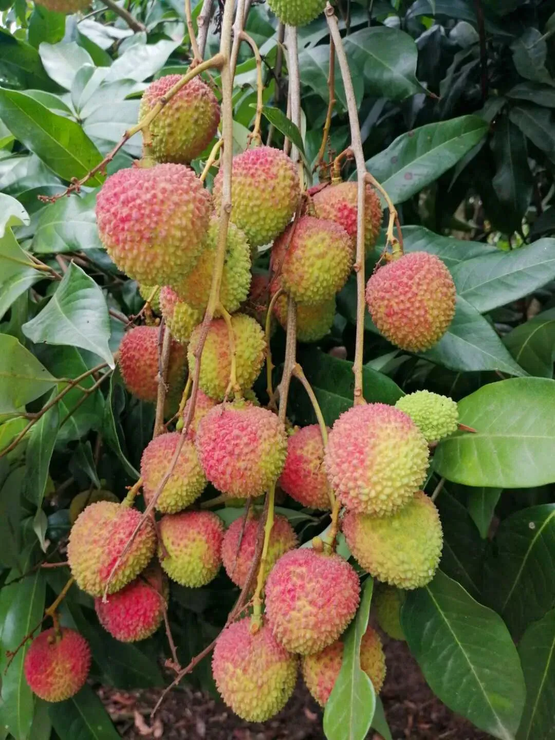 “一骑红尘妃子笑,无人知是荔枝来”,没错,说得就是我妃子笑。妃子笑属于优质荔枝,长得比较大个,果肉丰厚,果核不大。妃子笑的果皮红了1/3-1/2的时候,味道才是最佳的,所以现在来摘我,是最好的季节哦!