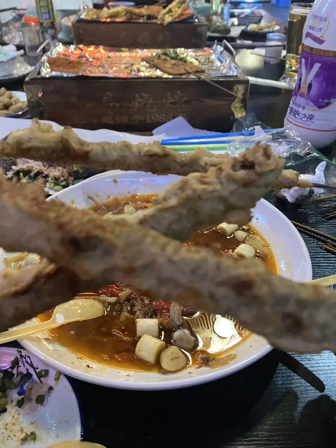 易烧烤的炸牛肉串真棒, 独家面糊脆脆脆。
