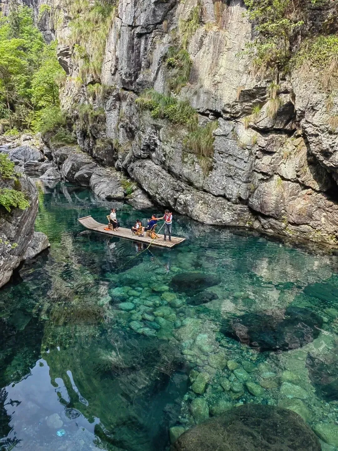 今天走远一点,去石台。先到仙寓山大山村,这里的水真是翡翠一样绿,走在峡谷里,满眼苍翠。都说这里是富硒宝地,我们在村民家坐了坐,喝了杯茶。下午的牯牛降龙门景区更美,严家古村保留了老徽州的模样,四叠飞瀑水流层层落下,像一匹白绸。龙门峡谷里树木参天,溪流潺潺,走起来阴凉舒服。路程虽稍长,但大巴很舒适,导游还在车上讲了讲当地的传说,时间过得很快。