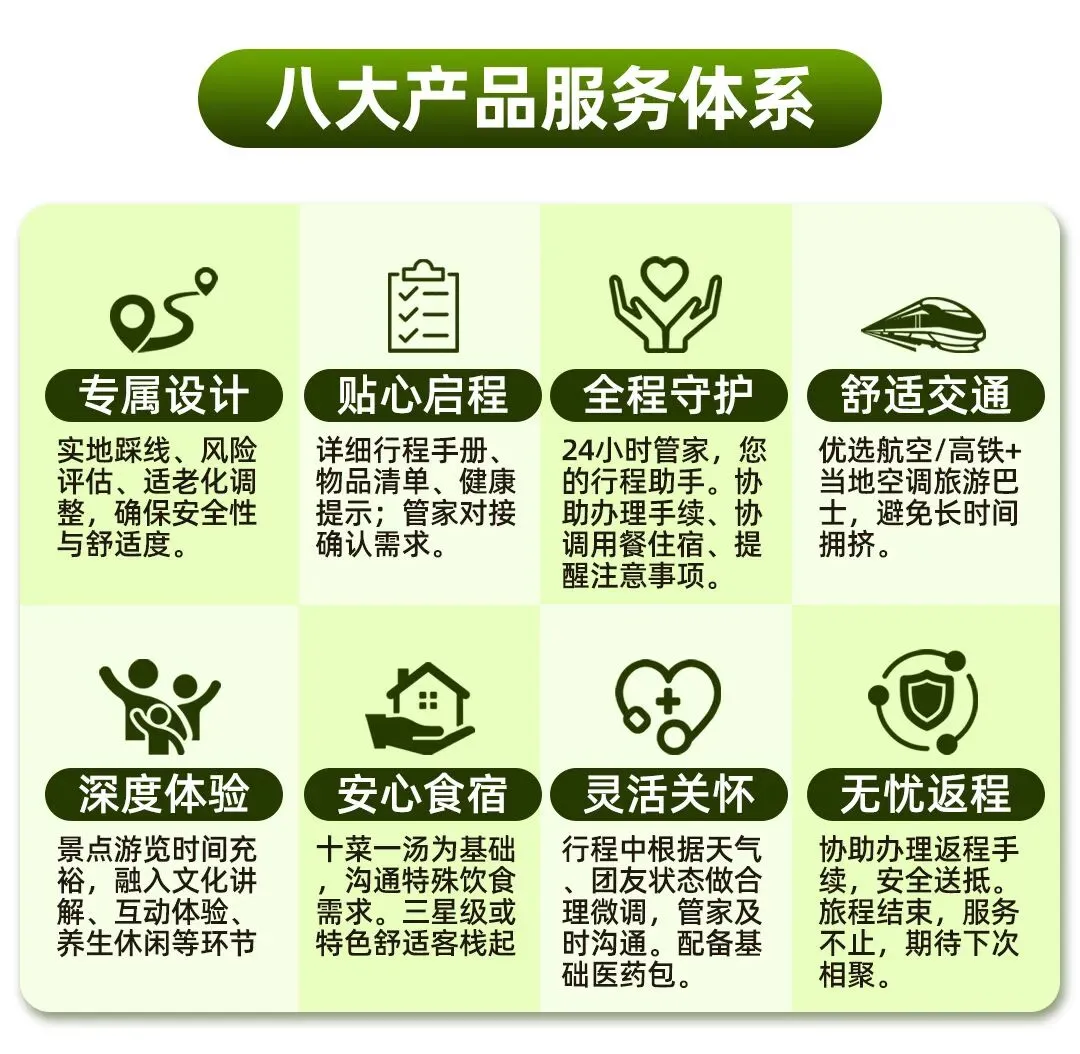 这次旅行,最大的感受就是“省心舒适”。行程设计合理,每天有张有弛,重要的美景一个没落下,但又不会太累。住宿的酒店干净安静,饭菜也合口。特别是全程有全陪小张和地接导游照顾,提醒我们加减衣服,走路慢点,上下车扶一把,就像自家孩子一样贴心。对于我们老年人来说,能这样轻松自在地看看祖国的好山好水,真是最大的福气。