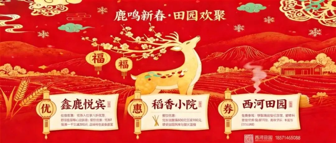 当华灯初上,中国人对“年味”的执着,尽在一桌团圆饭里。在西河田园,这份千年传承有了新的诗意。于稻香小院,尝一口归乡厨师烹制的土公鸡与山野菜,伴着稻浪虫鸣,尽享“把酒话桑麻”的悠然;或在鑫鹿悦宾大酒店,赴一场寓意吉祥的“全鹿宴”,品味山林馈赠的醇厚。宴罢,便在酒店特色客房中安顿身心,枕着星光入眠。这里,无论是田园的质朴,还是盛宴与美宿的惬意,都为您备好了最深情的团圆。