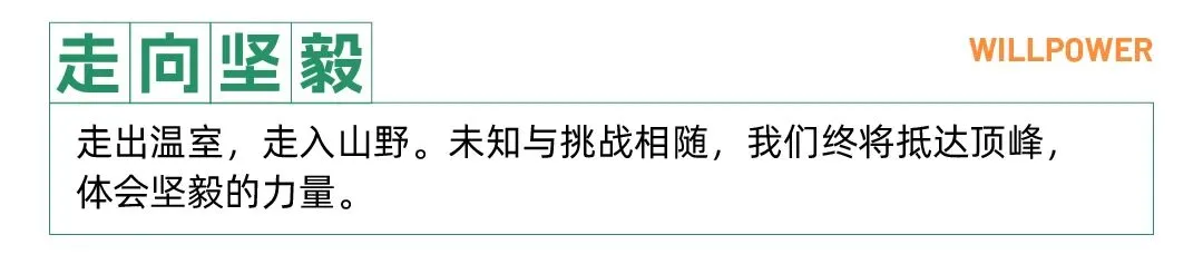 徒步穿越,就是一场自我挑战,在精神时出发,在疲惫中咬牙坚持,一次次自我鼓励、一次次鼓励队友。在行走中锻炼孩子的毅力与适应能力,每一步,都是一种领悟和收获。