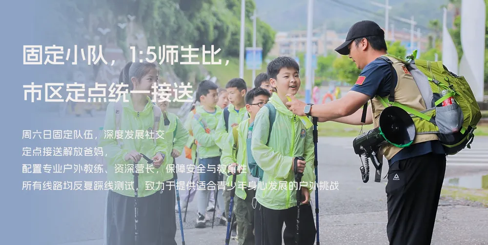 专业户外教练全程陪护,1:5超高师生配比