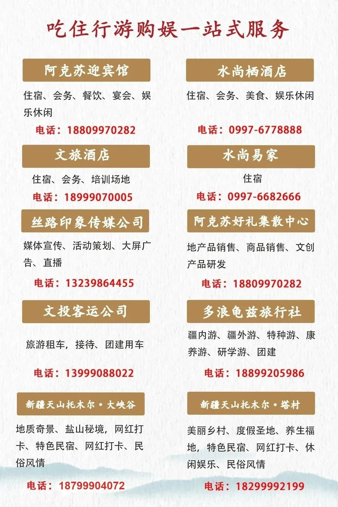 前言:为全面贯彻落实自治区旅游发展大会精神,大力发展阿克苏地区旅游产业,阿克苏地区文旅局、阿克苏地区文旅集团共同推出“带你游阿克苏”新媒体微信旅游平台,整合地区各县市文化旅游资源,将点、线、面全面串联,向疆内外深度介绍大美阿克苏。本期推荐文章:“免门票!天山脚下过大年,畅游冰雪托木尔,天山托木尔景区·塔村春节期间活动一览!”欢迎转发、分享!