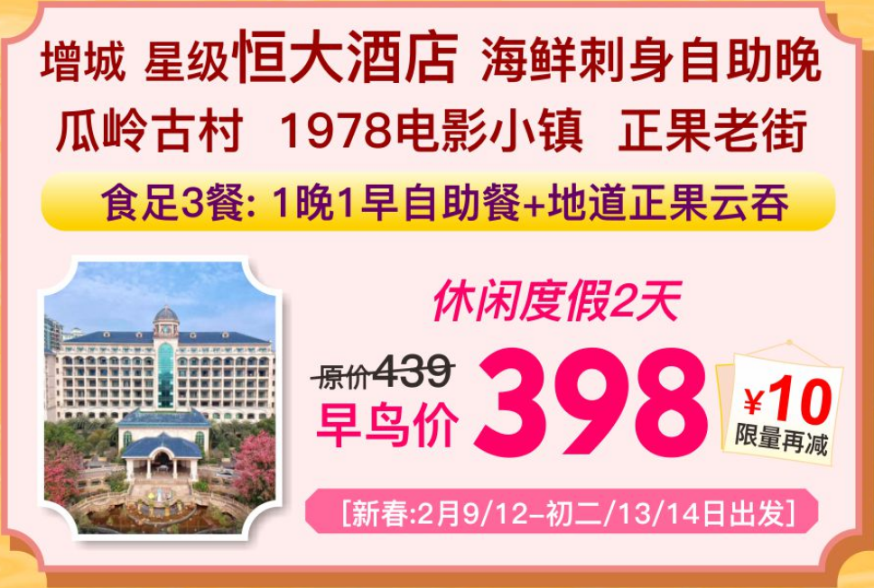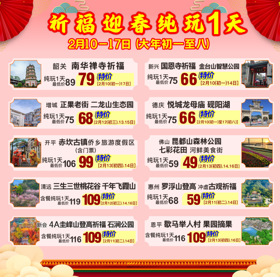 【纯玩2-3天:春节期间每天铁发!初五出发仲有靓位】