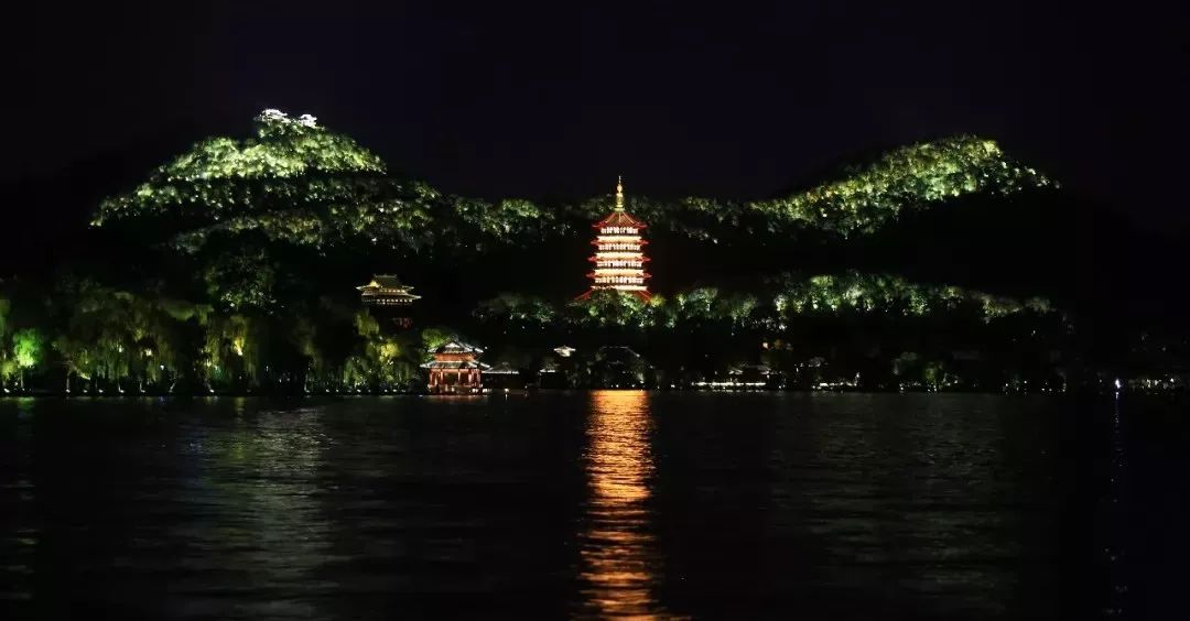 晚上也可以夜游西湖,赏西湖夜景。入夜后的西湖是很动人的,一盏盏相继亮起的景观灯,把宝石山,城隍阁,湖中三岛装点成黑夜中最闪耀的星星。